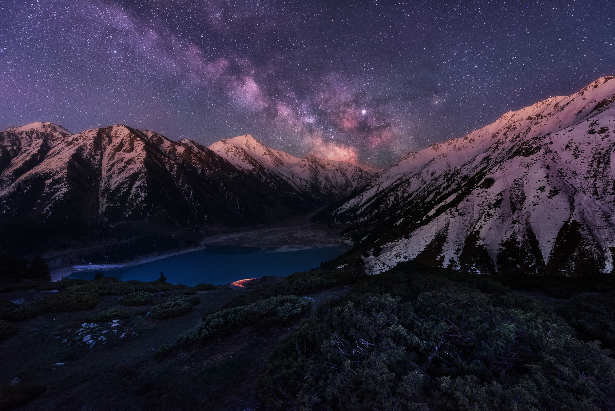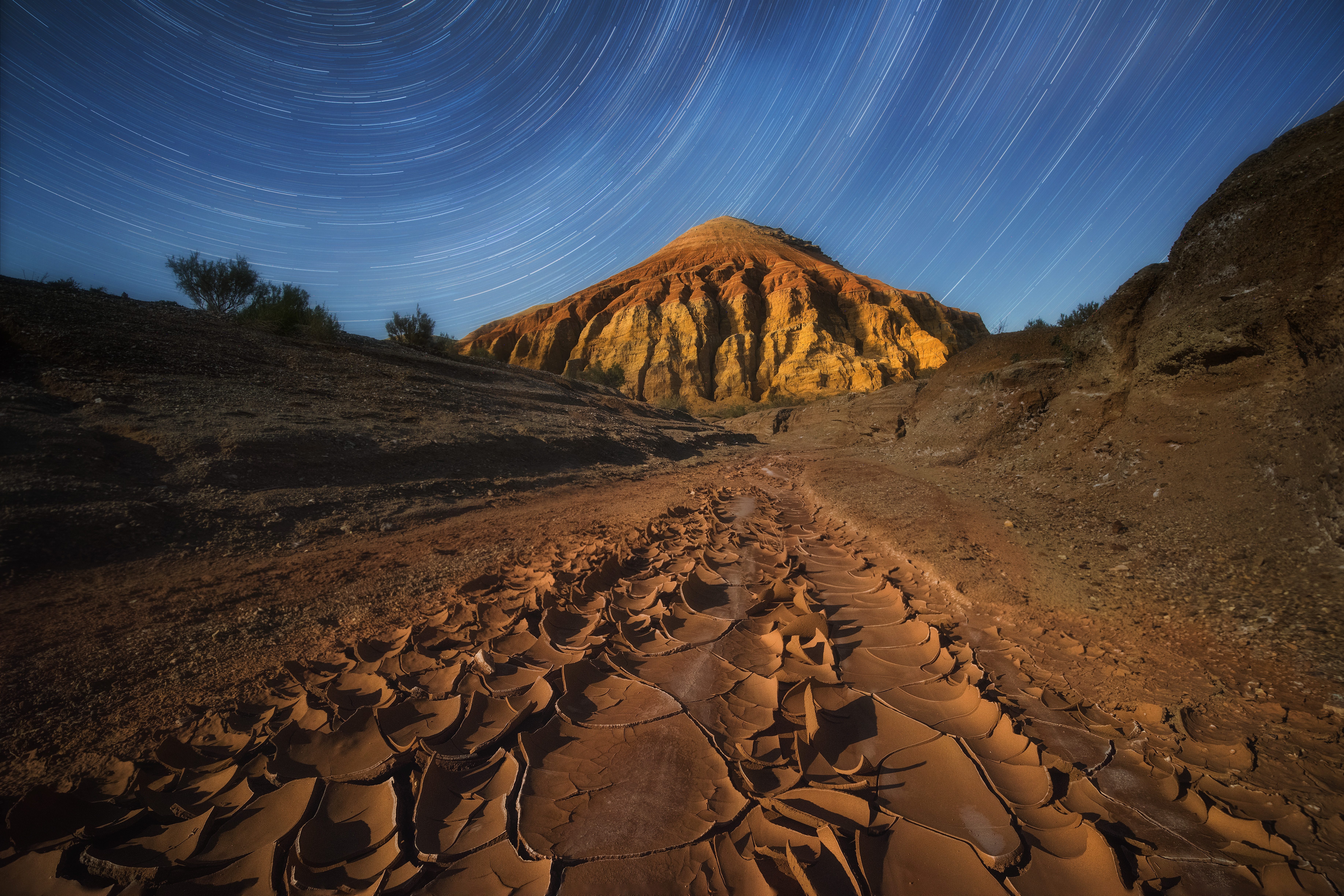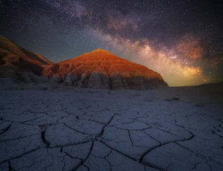 Далее едем в каньон разноцветных гор Актау. Снимаем закат, ставим палатки, ужинаем. Для желающих при наличии погоды и подходящей фазы луны мастер-класс по съемкам звездного неба.