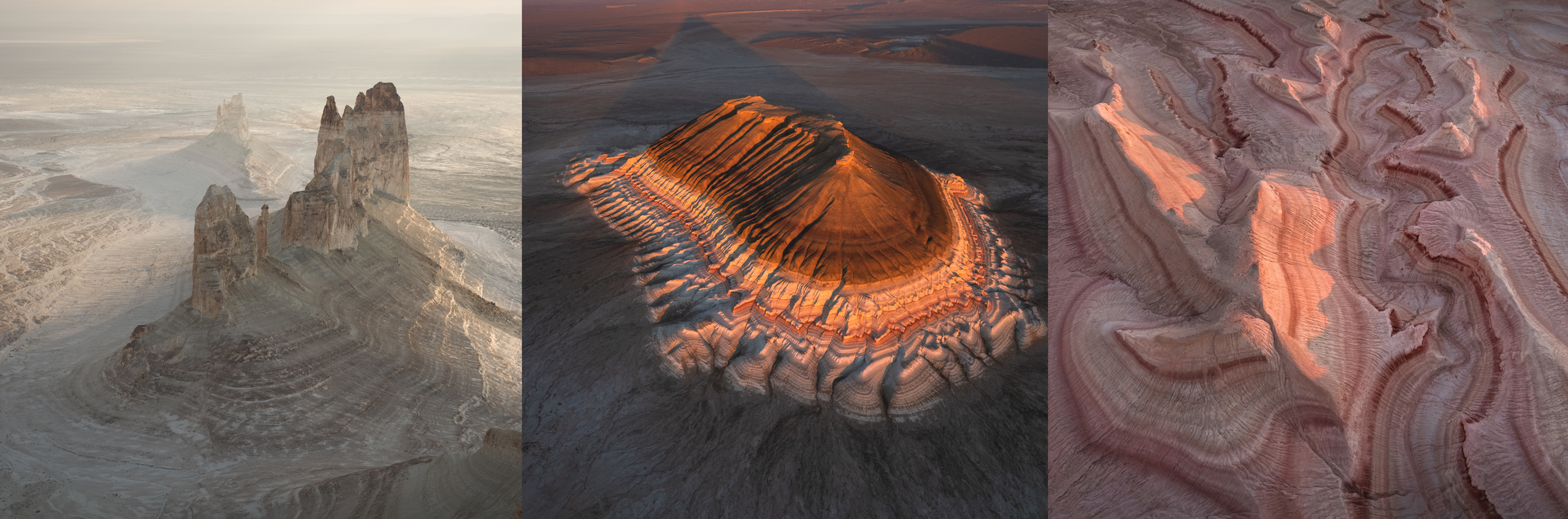 Утром снимаем в урочище Айракты. Благо, эта локация расположена совсем недалеко от места нашего ночлега. После съемки возвращаемся в Шетпе, собираемся и переезжаем на самую отдаленную локацию нашего путешествия - Сор Тузбаир. Ставим лагерь на границе гор и солончака, снимаем закат