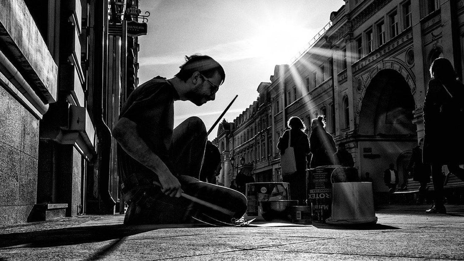 Street musicians and actors