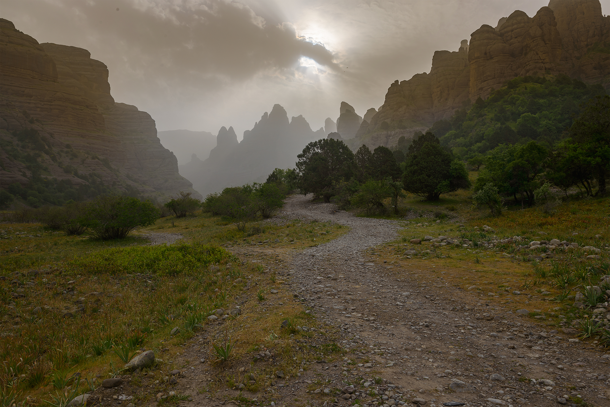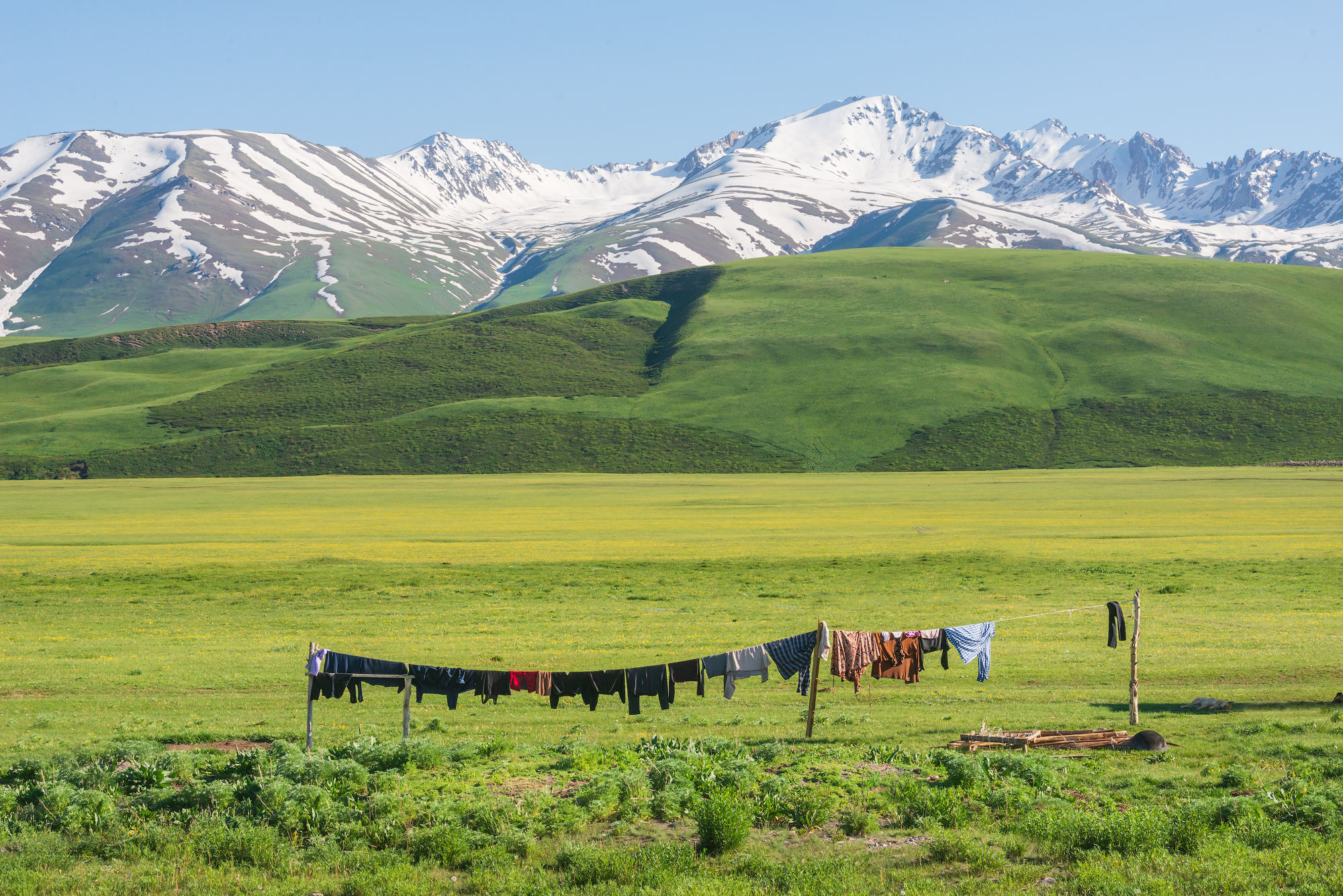 Внутренний Тянь-Шань с ледниками, многочисленными выходами цветных глин, с проснувшимися от зимы и брызжущими жизнью высокогорными пастбищами.