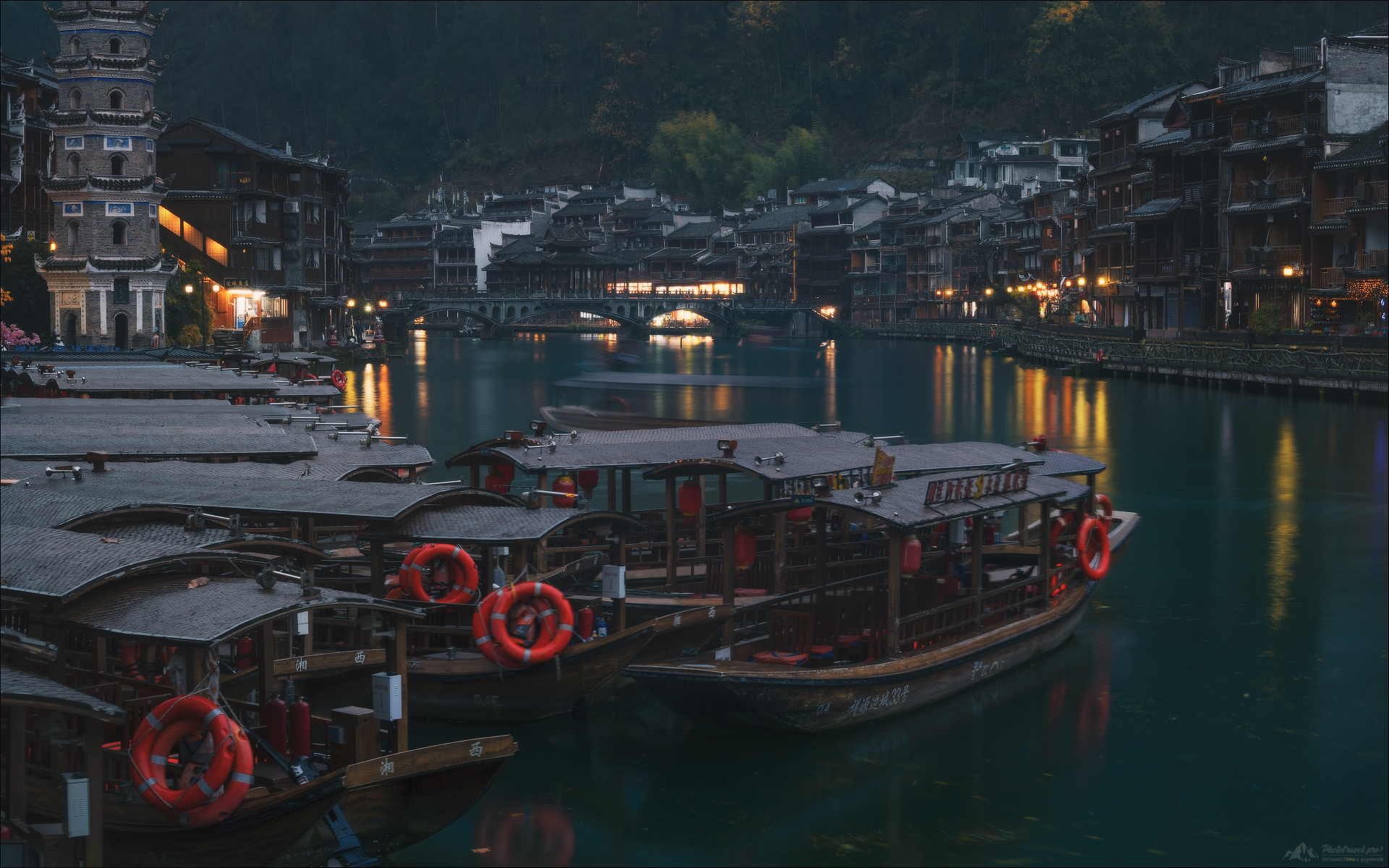 – туманные утренние сцены в Фэнхуане — красивом старинном городе на воде