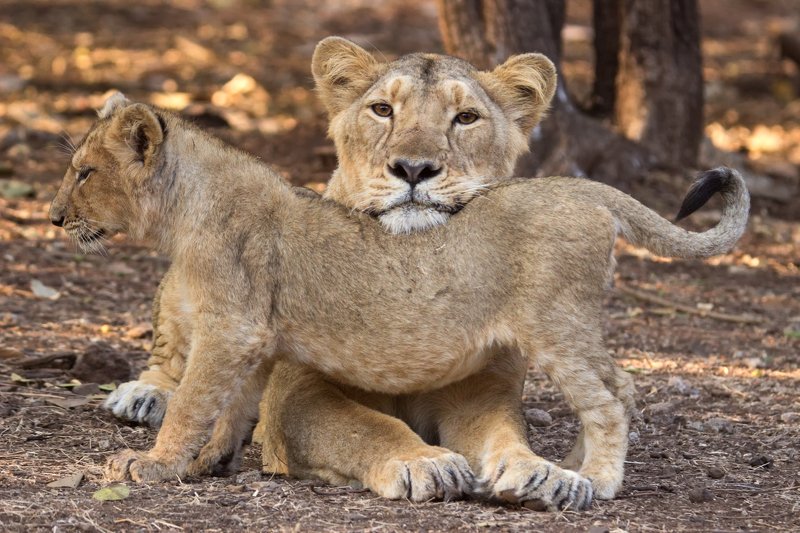 A memorable morning Gir forest national park, in morning there was lion family was plying, there where 4 cub 2 lioness and one lion male in the group. Cubs are playing with his mother and father two of these cub was very naughty, they want come near at our vehicle but mother lioness not allow them so they come near slowly slowly at vehicle. this was the time where i was take image.