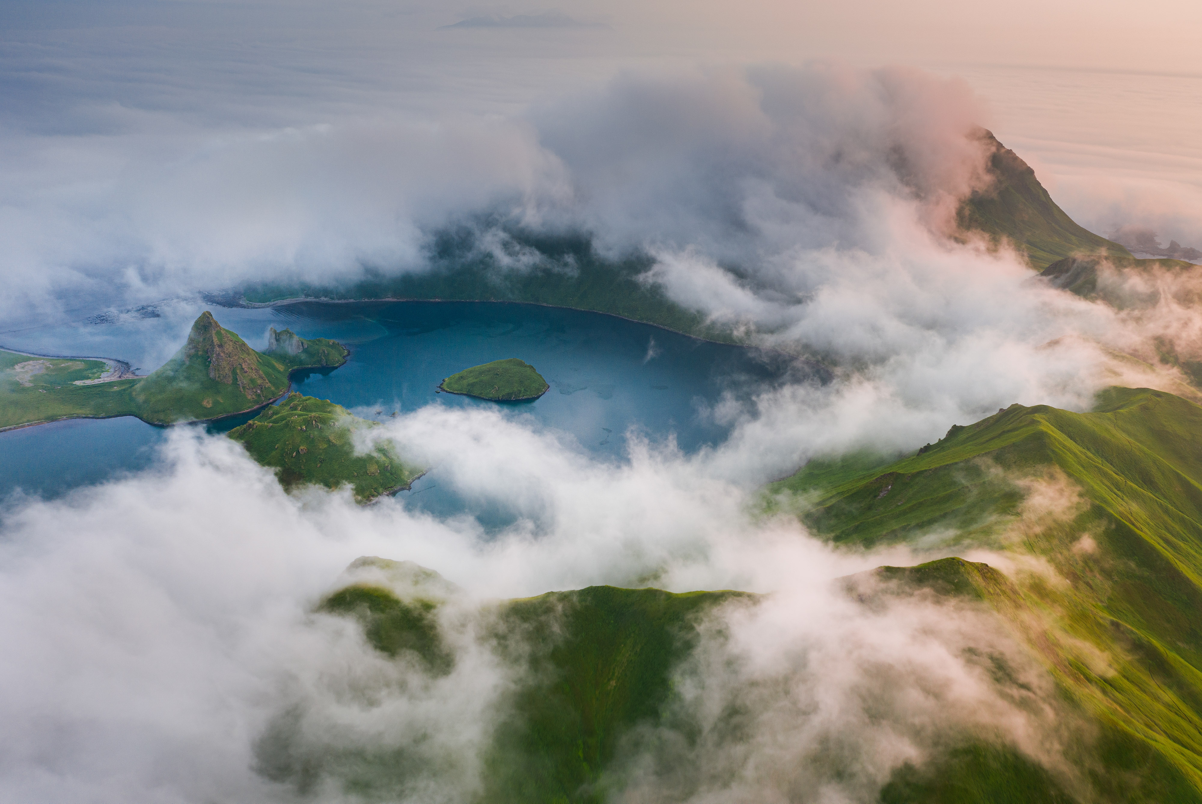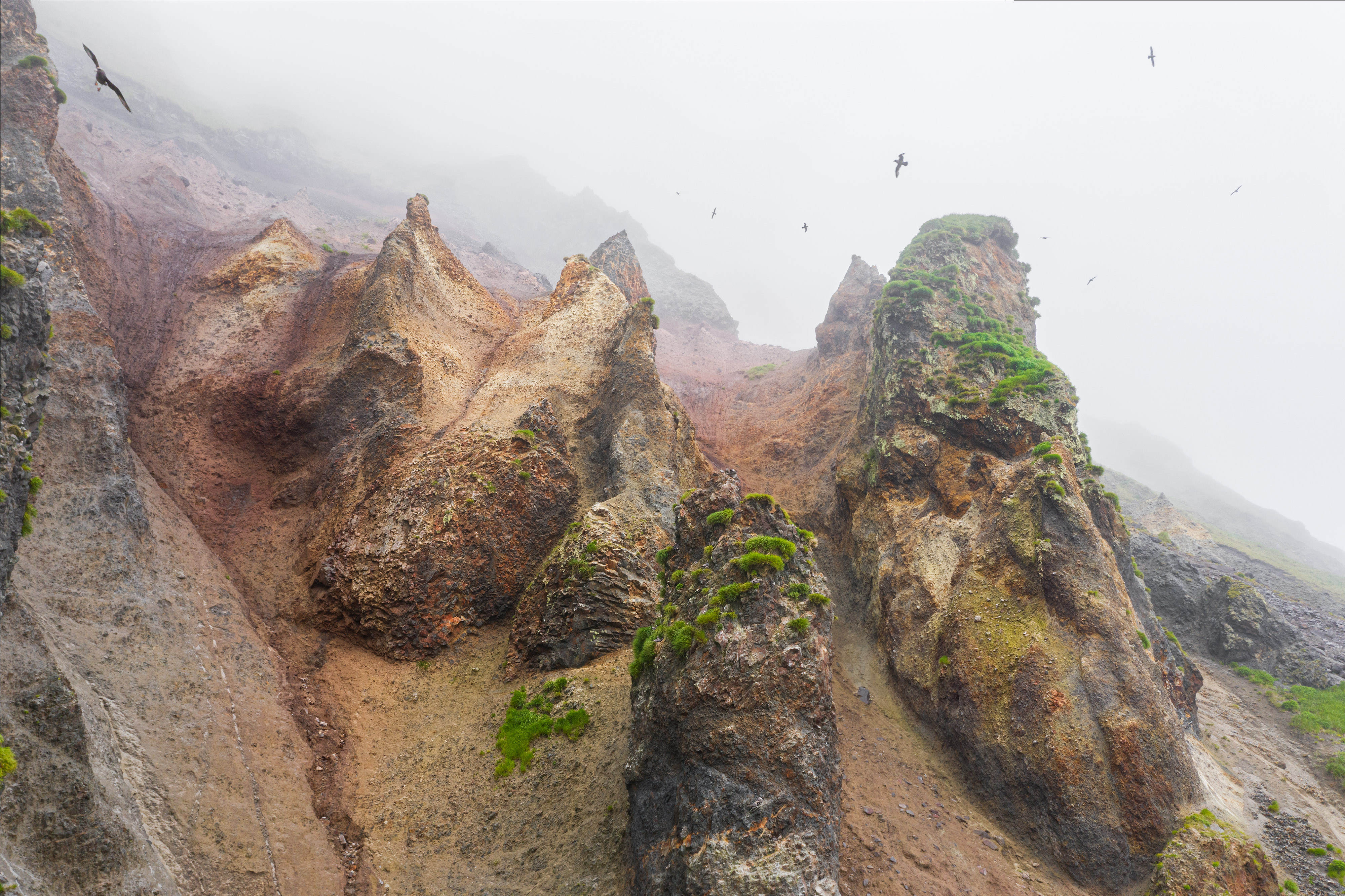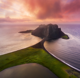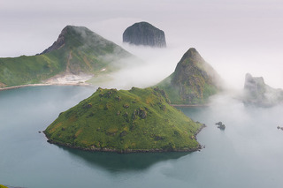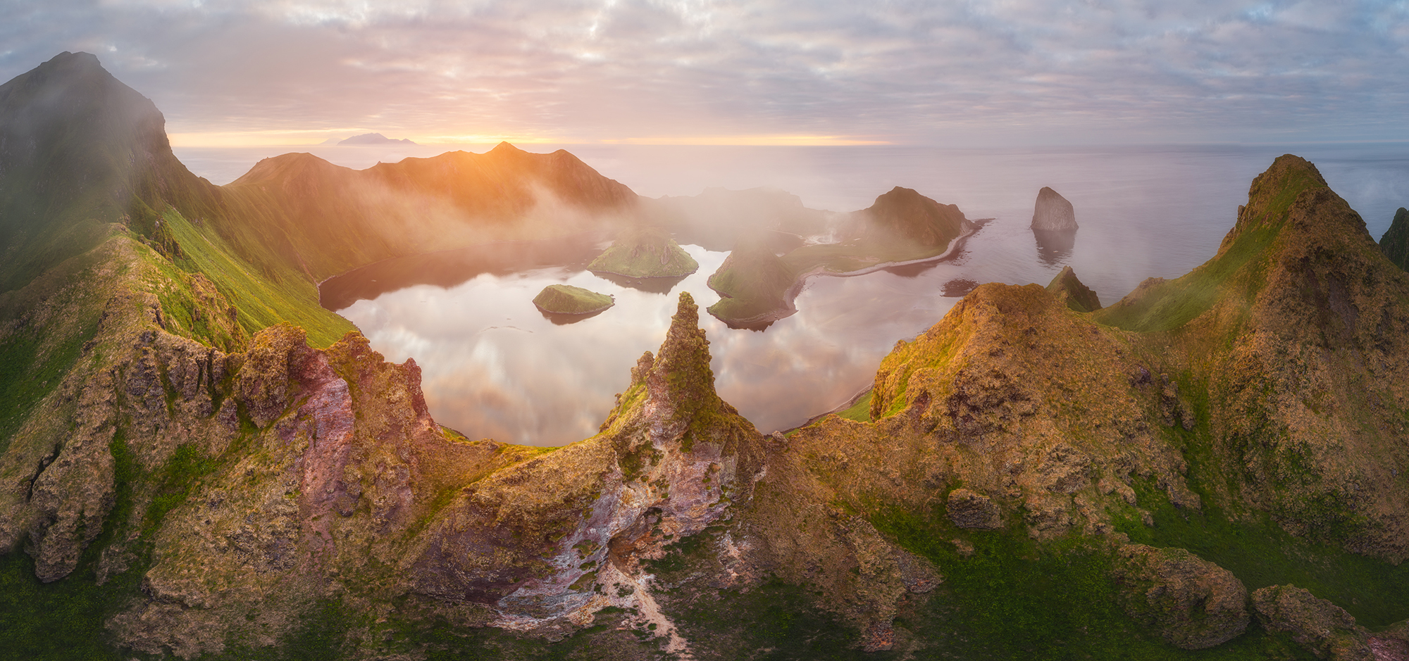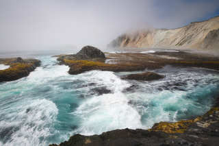 Бухта Кратерная - кальдера древнего вулкана, из которой возвышаются вторичные вулканические конуса. Горячие источники. Песцы и морские котики. Впечатляющие скалы. Все это - остров Янкича, настоящая земля до начала времен.