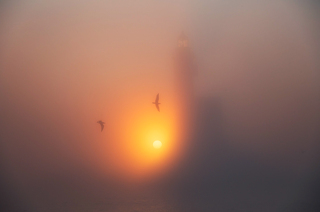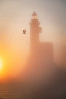 На рассвете приходим на маяк Анива. Снимаем этот легендарный маяк сначала с воды на фоне восходящего солнце, а потом высаживаемся и идем его исследовать. Поднимаемся на маяк, проникаемся духом морской романтики)