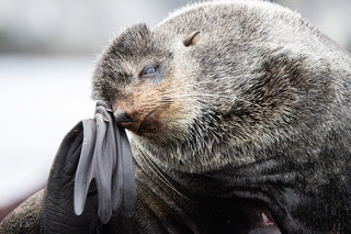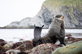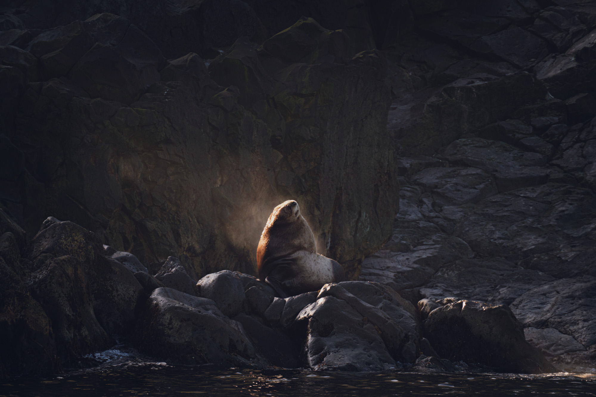 Животные здесь идеально вписываются в пейзаж - они лежат на базальтовых полках неприступных берегов на фоне впечатляющих скал.