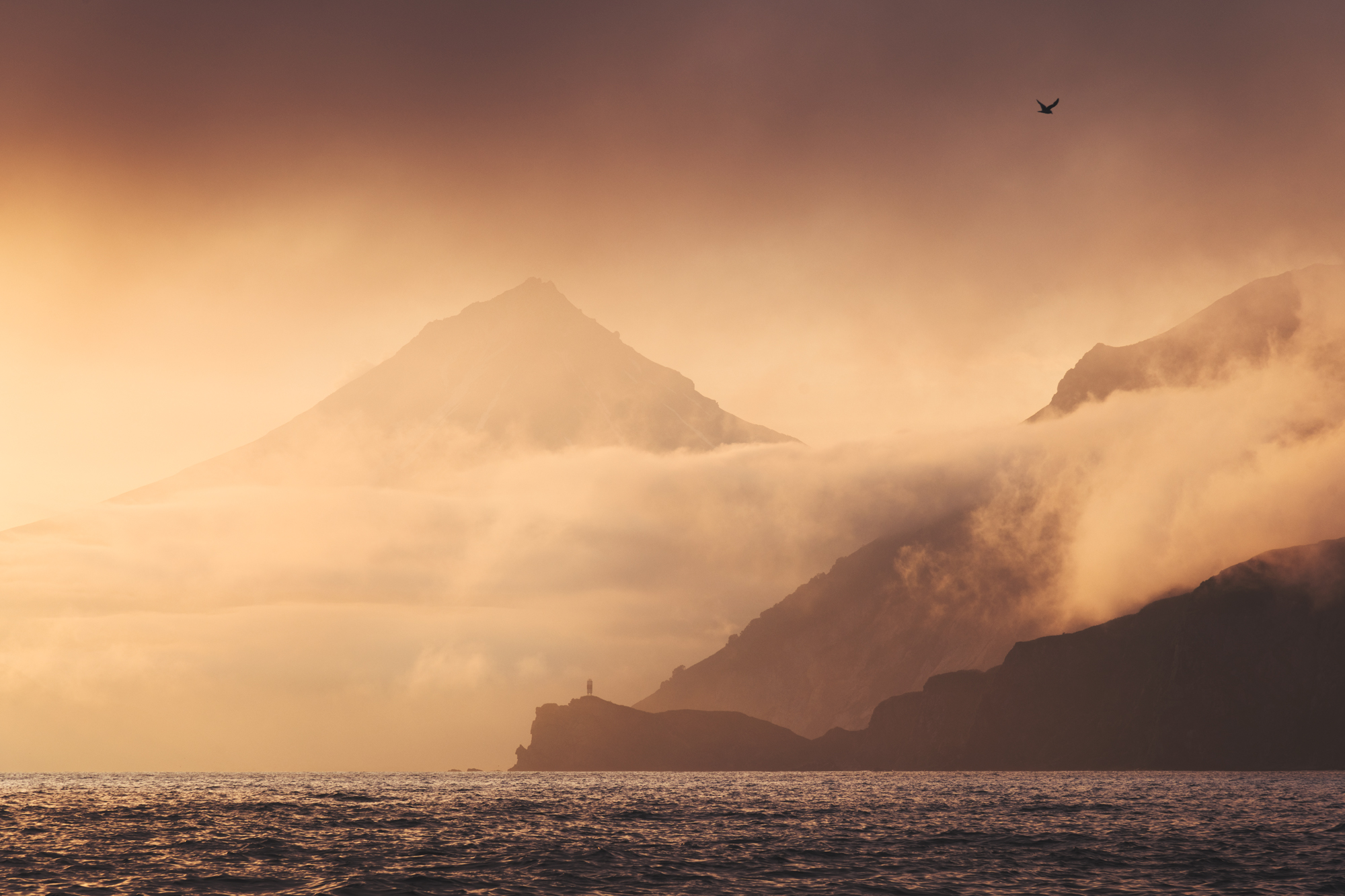 Здесь есть не только старый полустершийся поселок и маяк, но и самый высокий вулкан Курильских островов - Алаид.
