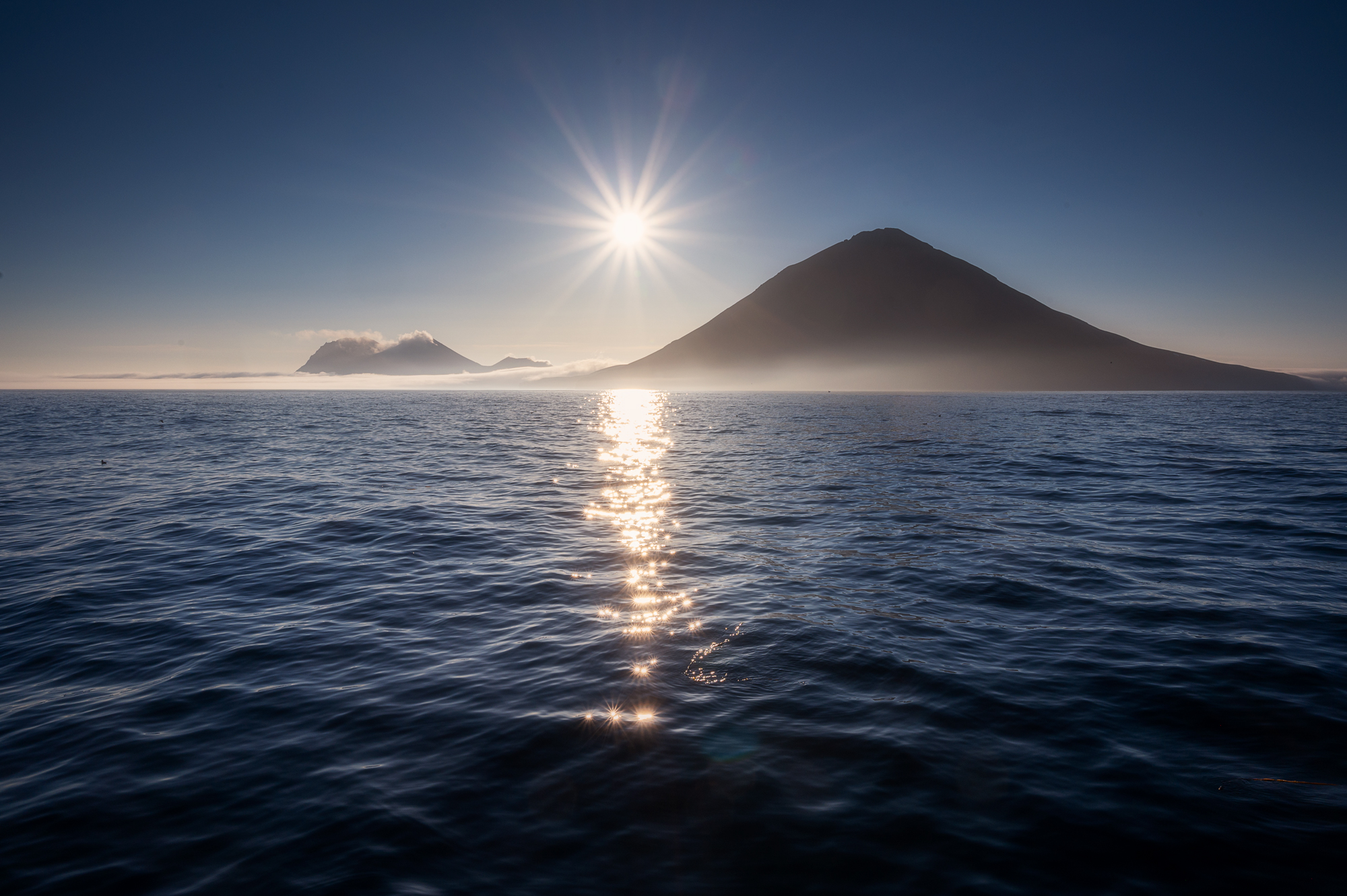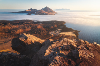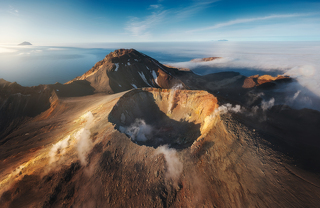 Если погода будет благополучной, то мы поднимемся к кромке кратера вулкана Черного, чтобы заглянуть в сам кратер и с верхней точки осмотреть окрестности - острова Брат Чирпоев и Броутона и огромный океан вокруг. После заката спускаемся к лодке, ужинаем и начинаем ночной переход к острову Симушир.