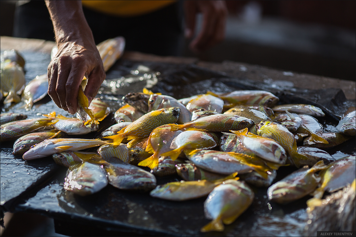 С рассветом же начинает работу местный рыбный рынок. В восходящих лучах солнца повсюду кипит жизнь — привозят и разделывают свежую рыбу. Большие партии заливают сверкающим на солнце льдом и сгружают в грузовики. Уставшие от ночного рейса рыбаки, отдыхают на своих лодках.