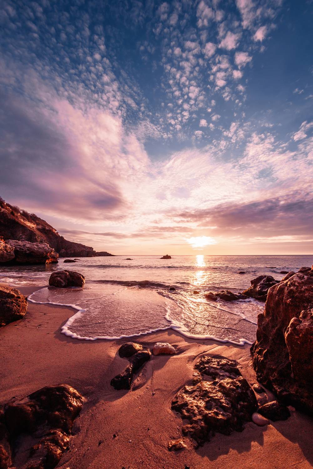Зимнее море в свете закатного солнца. Крым.