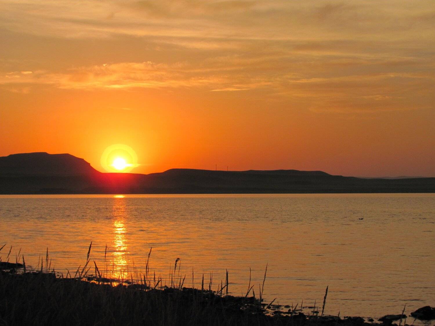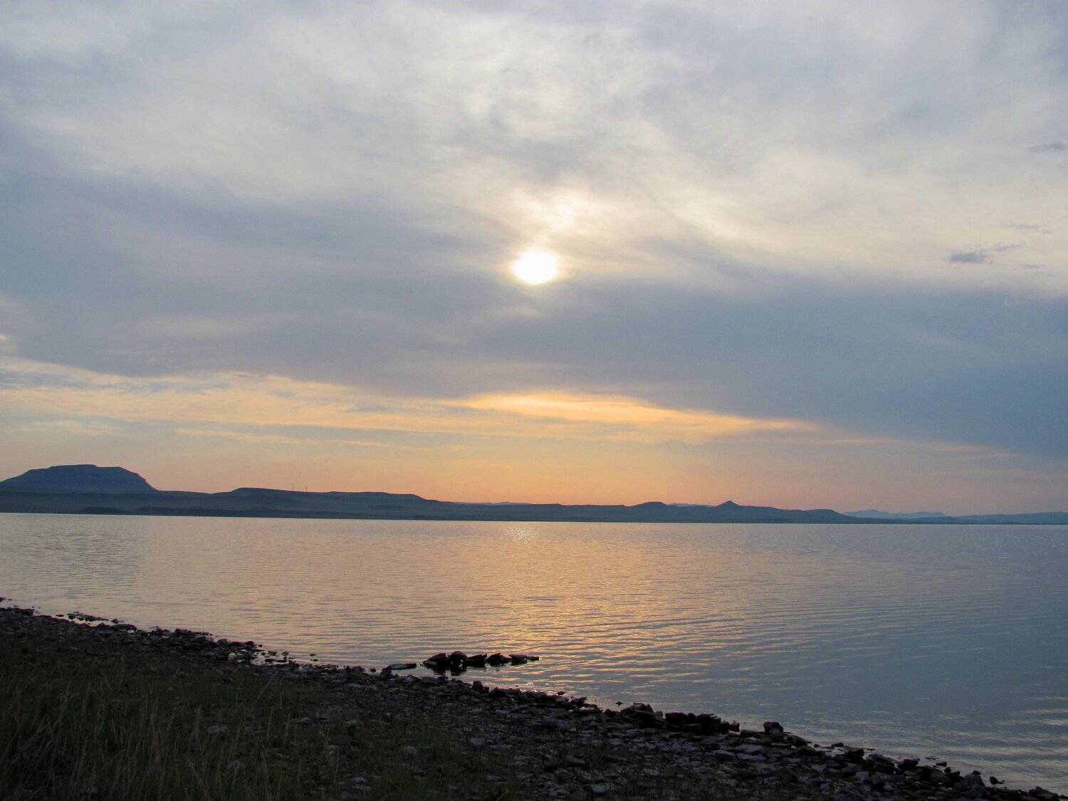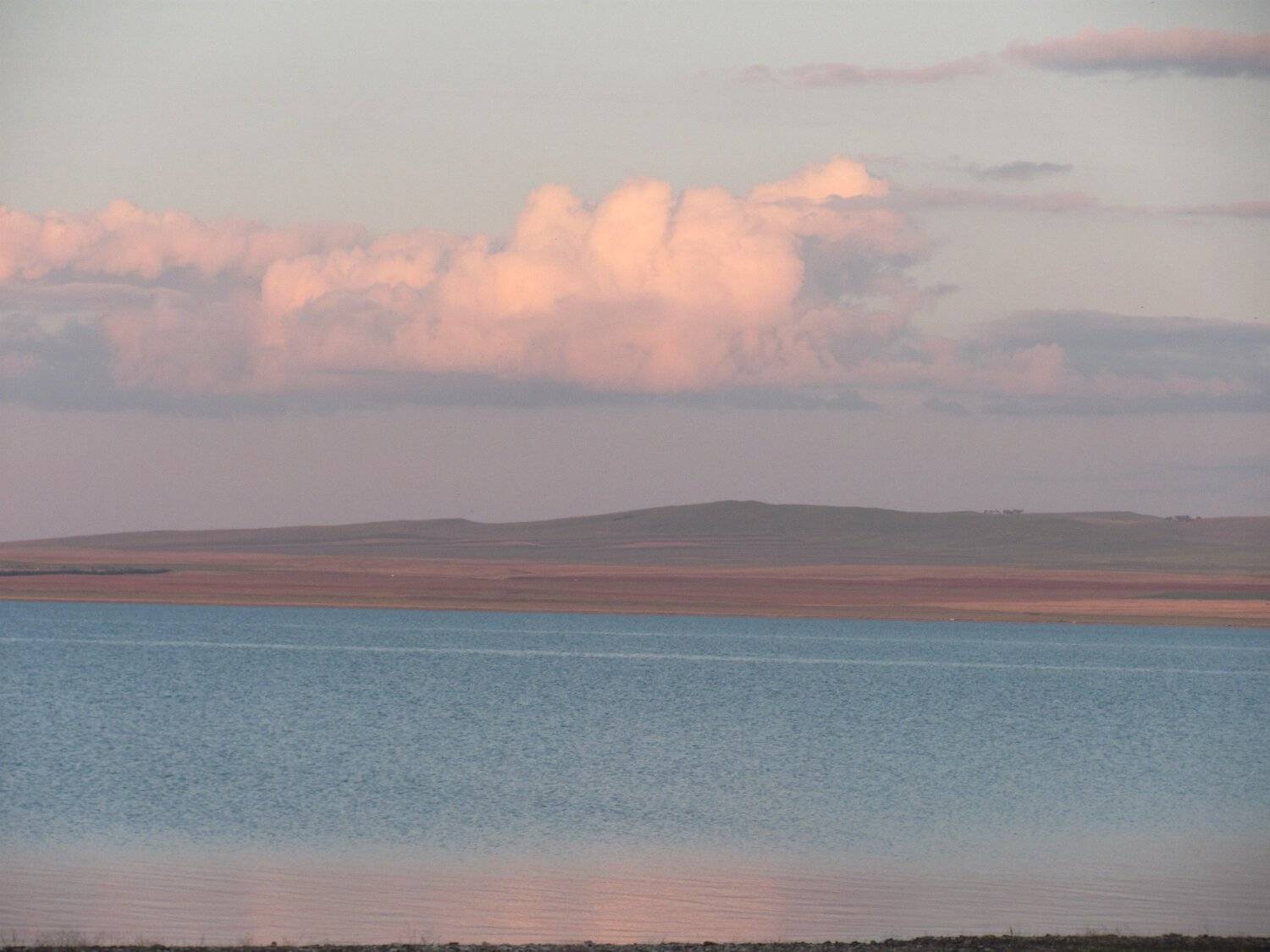 Розовые облака над озером Белё в Хакасии.
