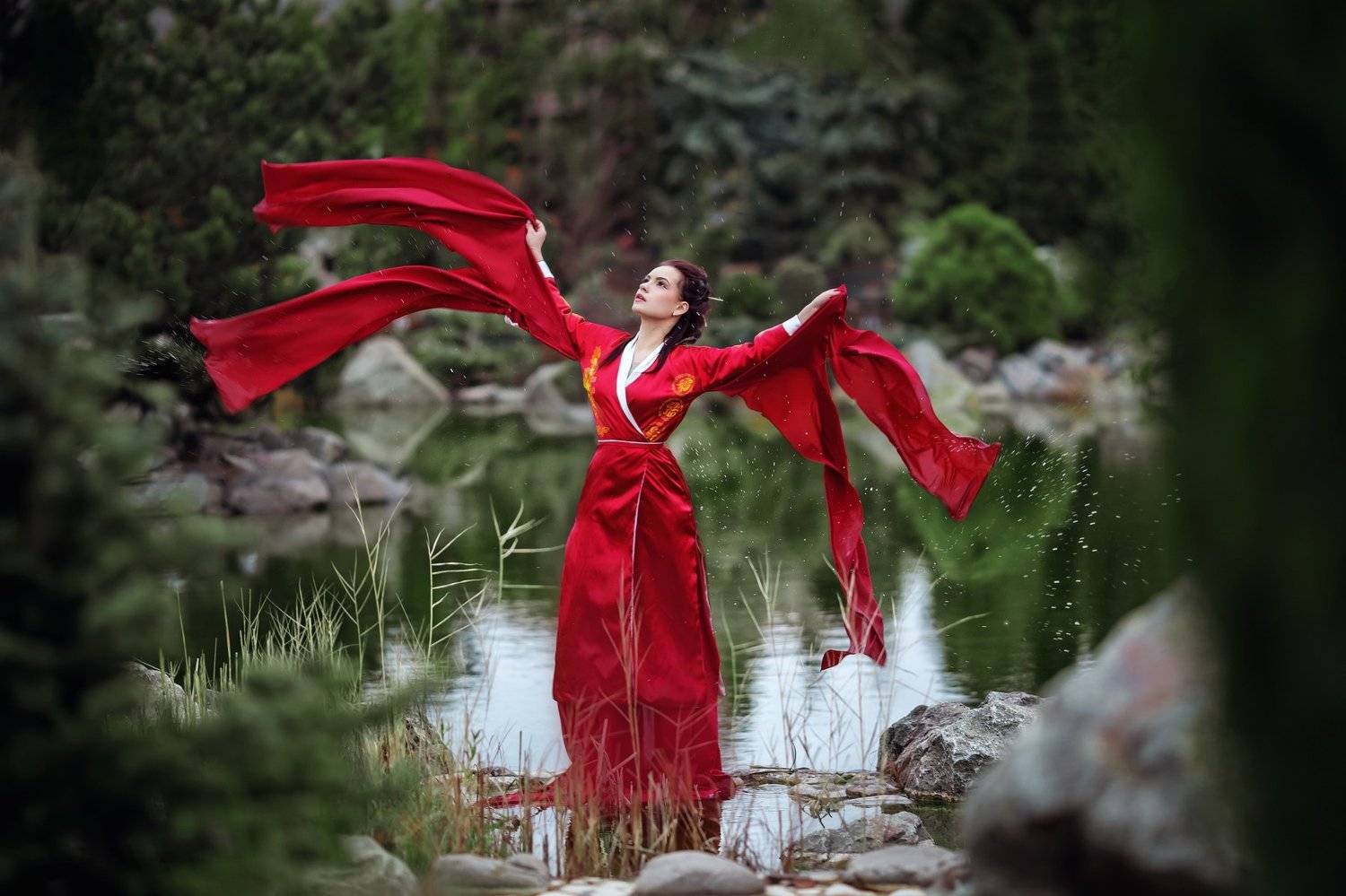 Девушка в красном кимоно