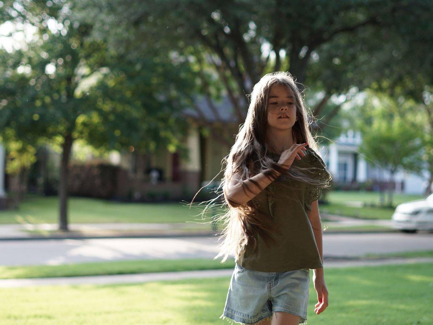 Rays of the sun in dancing hair.