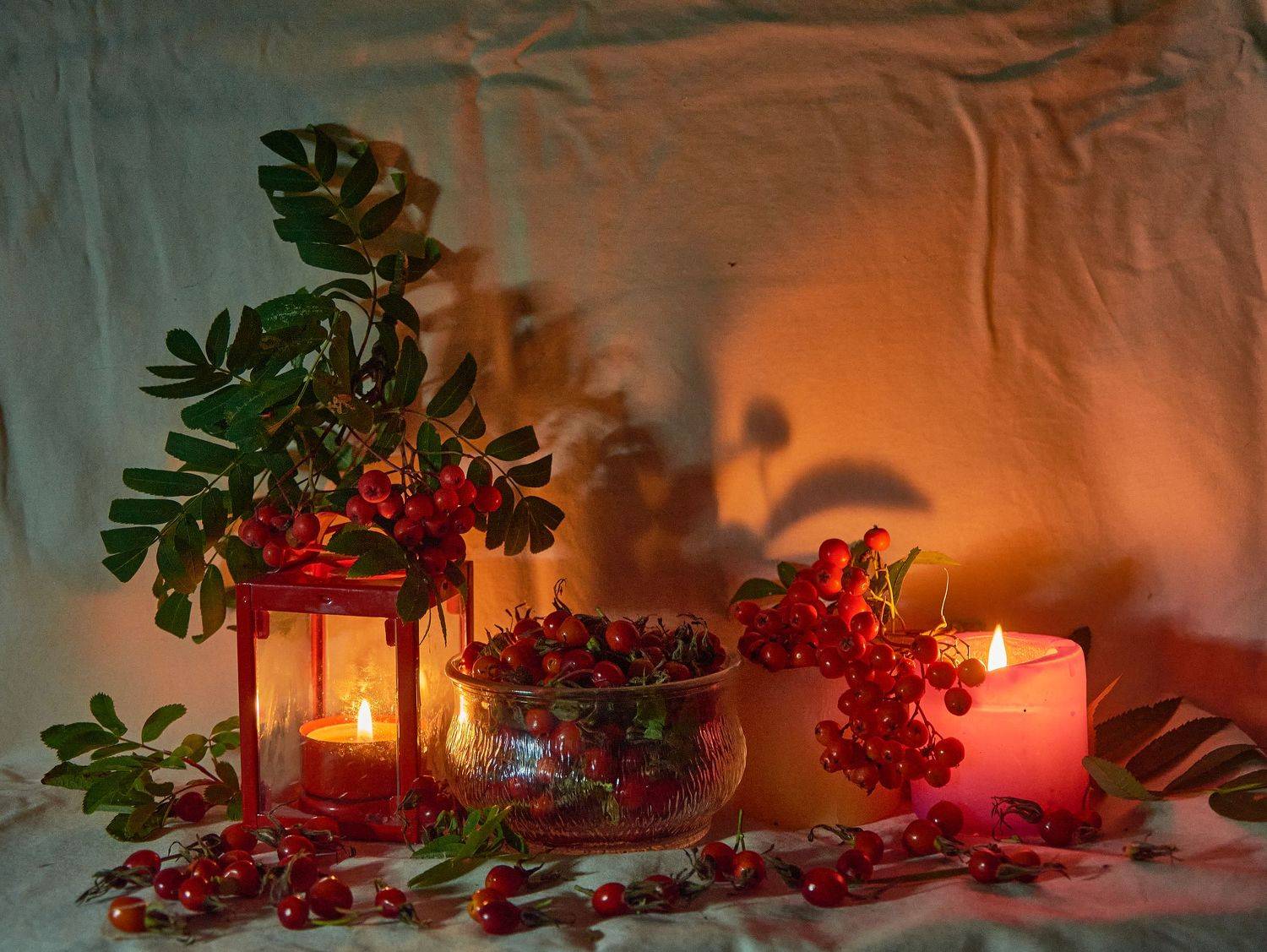 winter christmas still life by candlelight