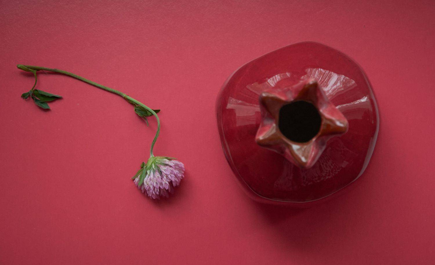 clover and red vase on the red background