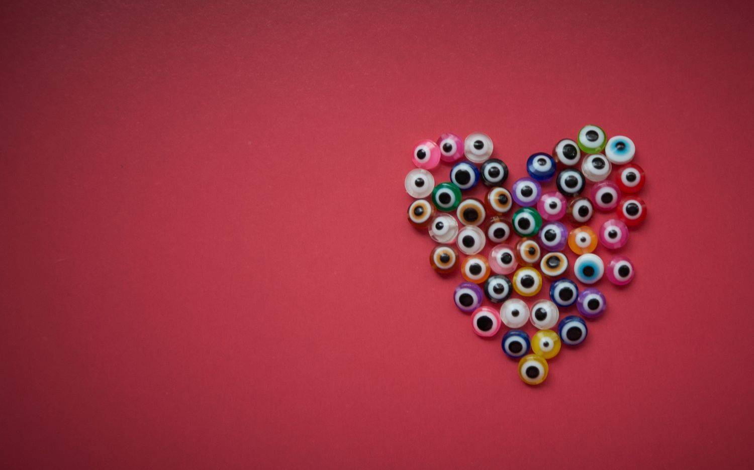 a colorful heart on the red background
