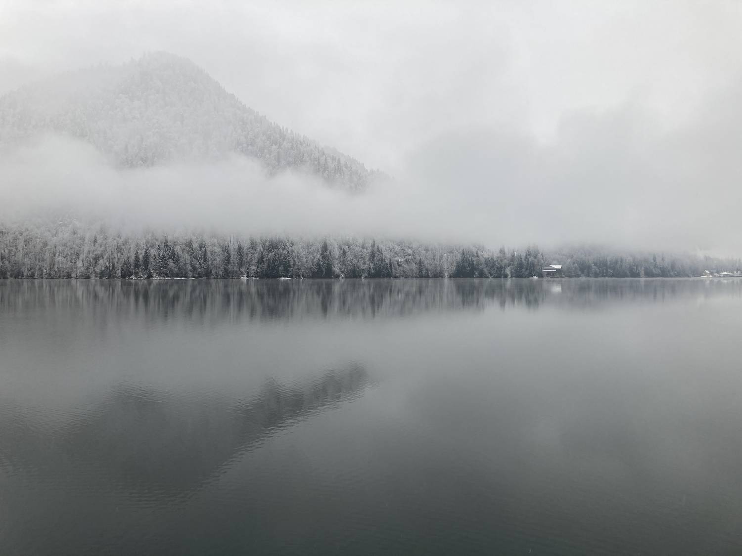 Туман на озере Рица