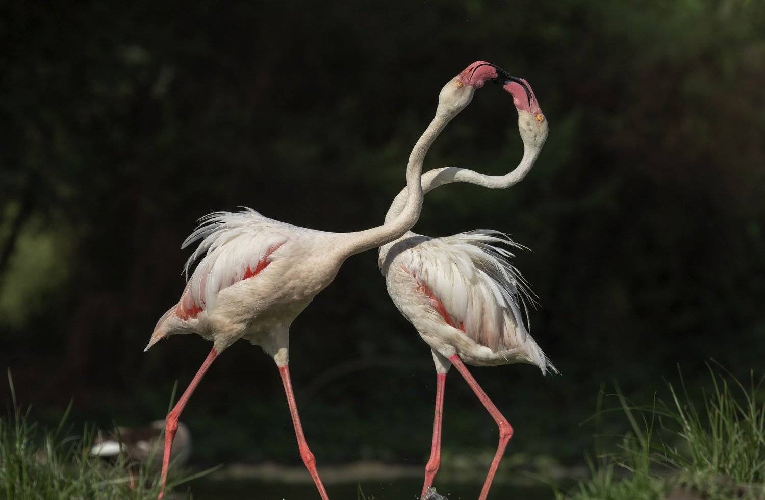 Greater Flamingo fights over food at early morning