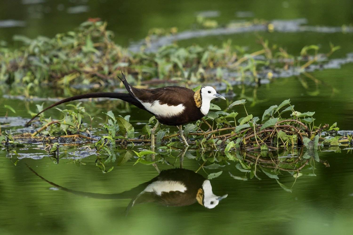 Phesant-tailed Jacana in Water Reflection