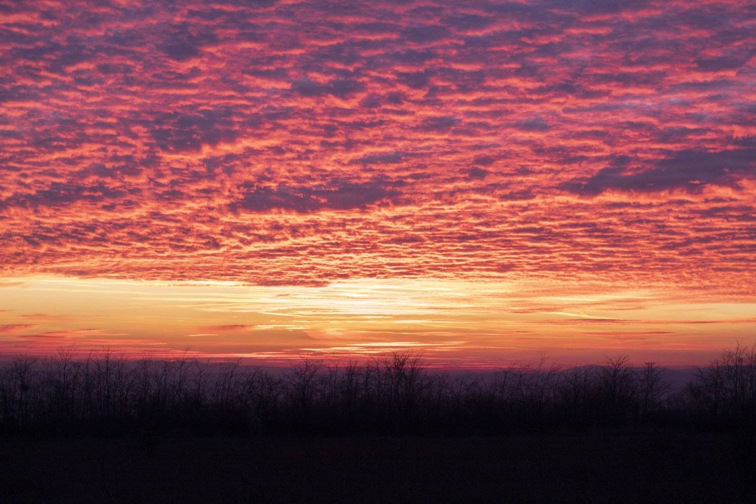 Sunset through tree silhouette