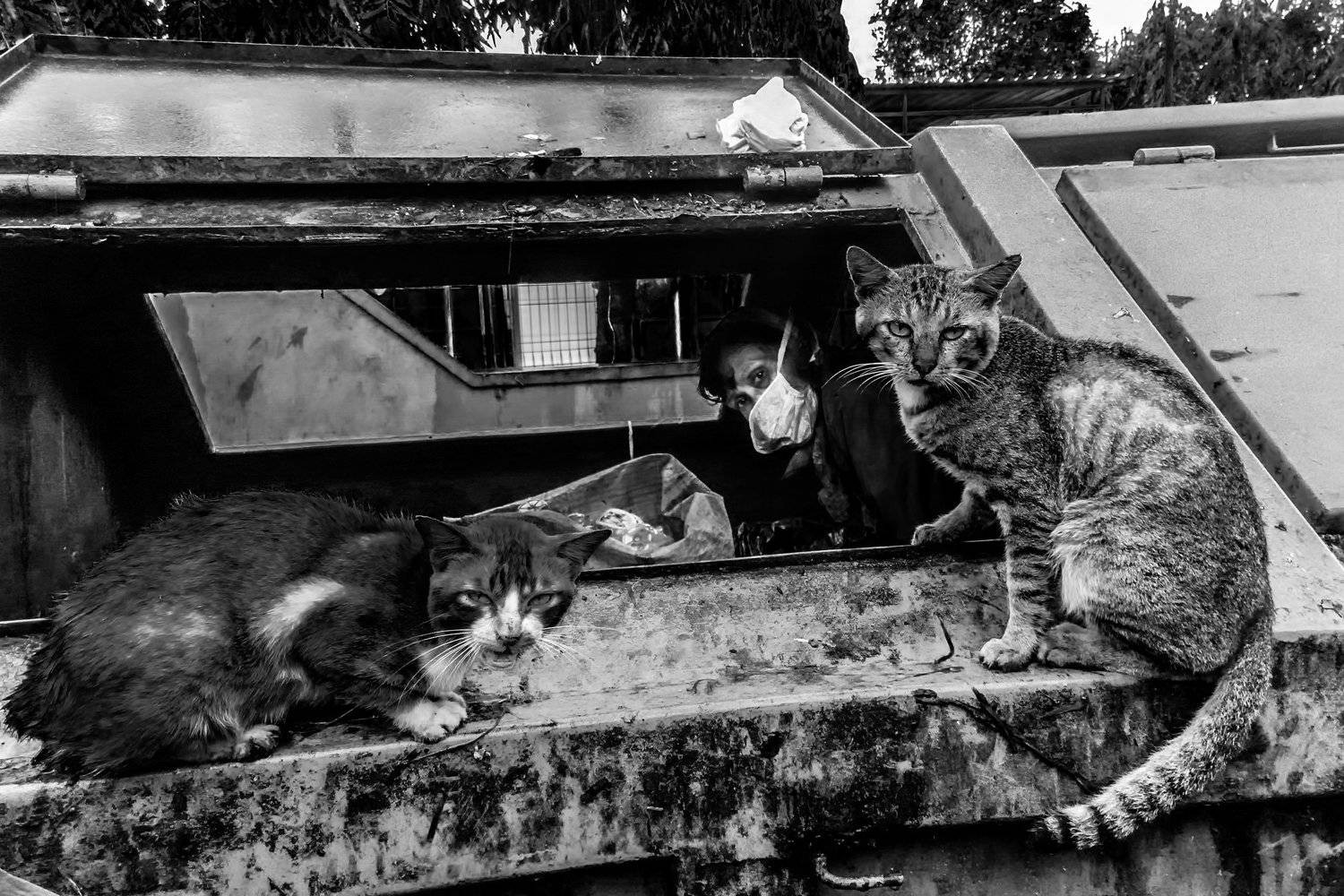 cat human cat in a garbage can.