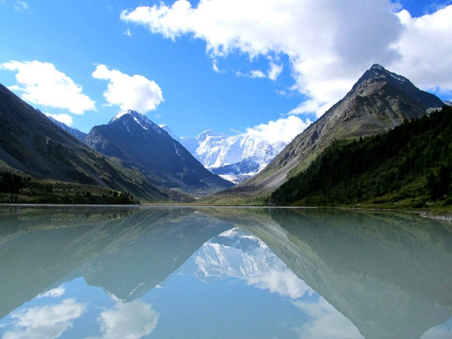 Аккемское озеро, на заднем плане гора Белуха. Горный Алтай