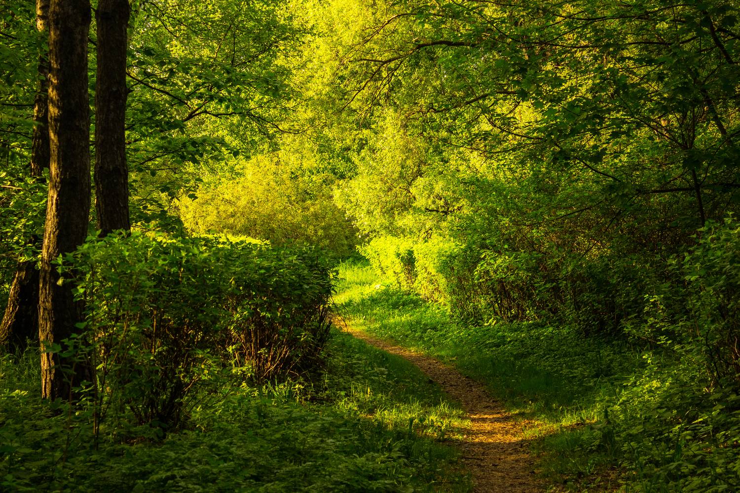 Теплый солнечный день в лесопарке.