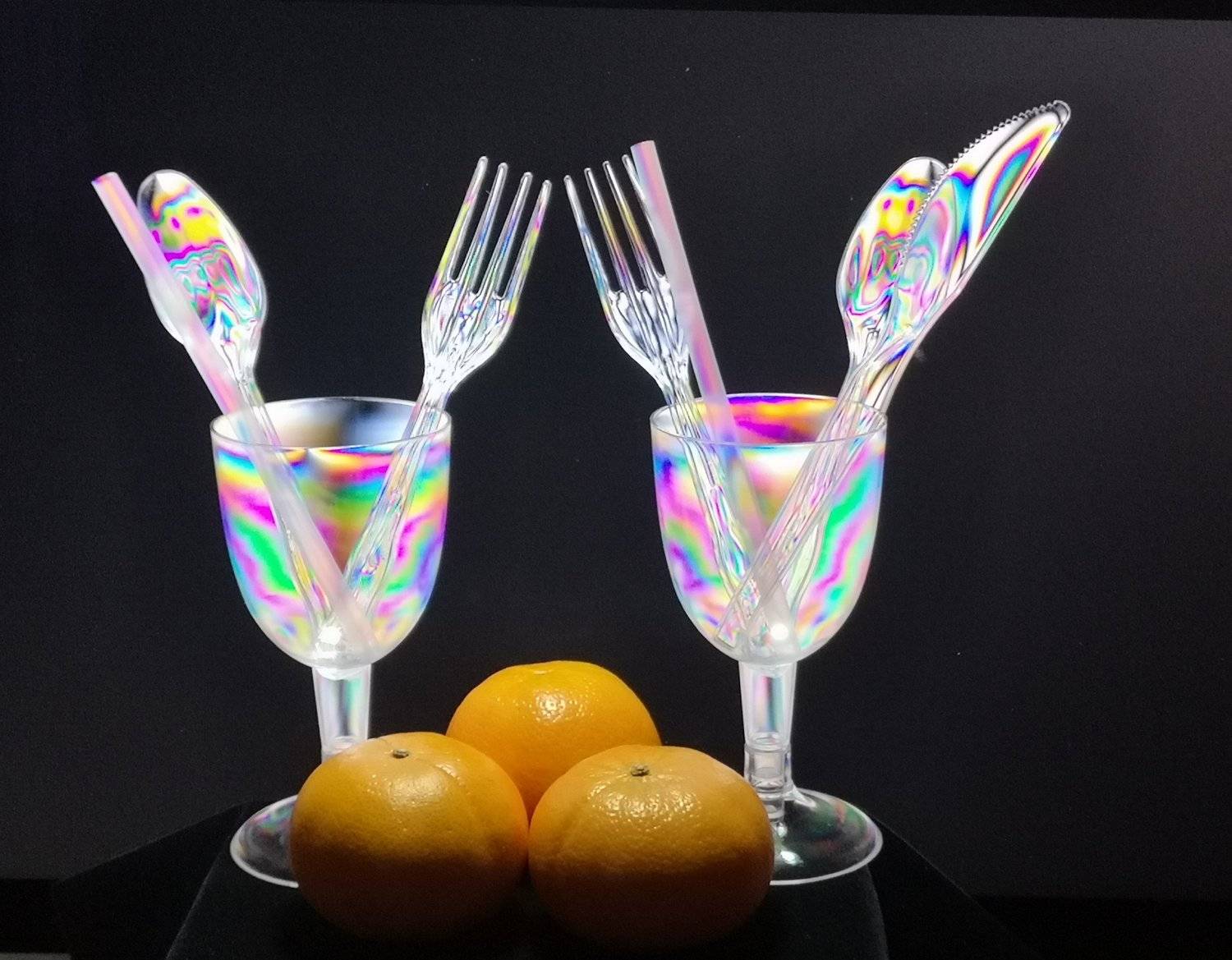 Dining with plastic.