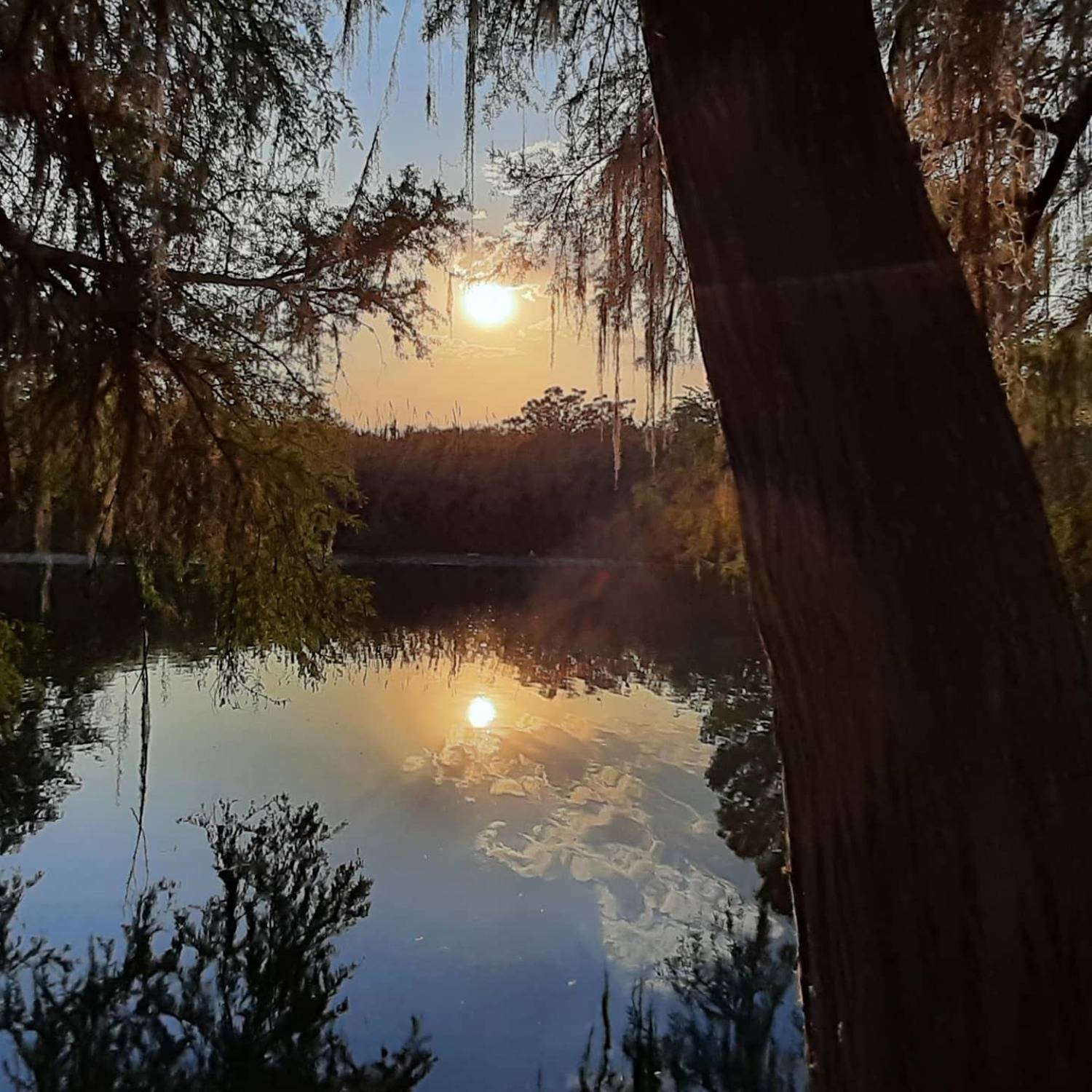 Sunset under the shade of the trees