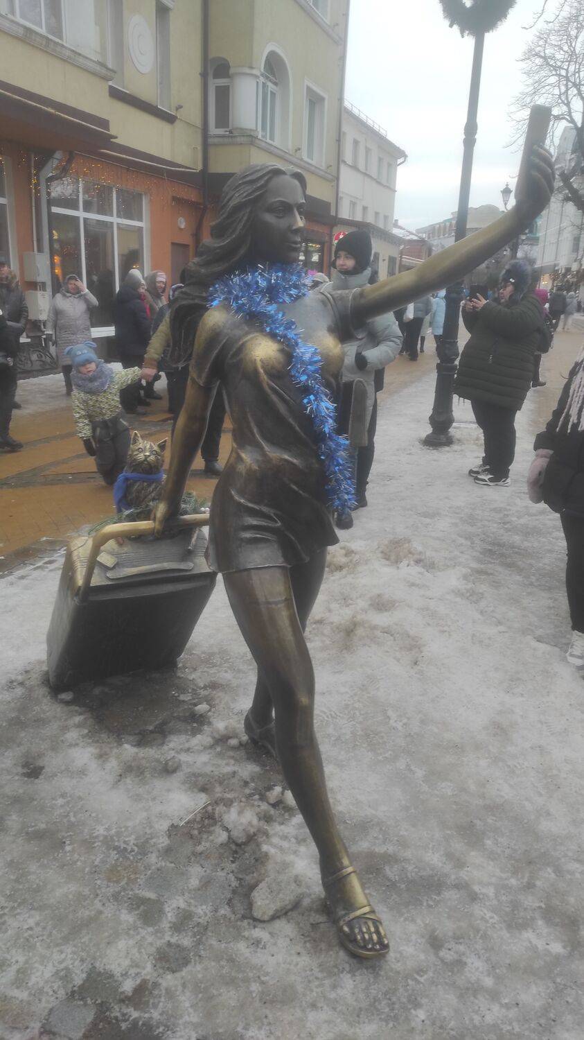 Скульптура "Курортница" в Зеленоградске, городе кошек, в Калининградской области.