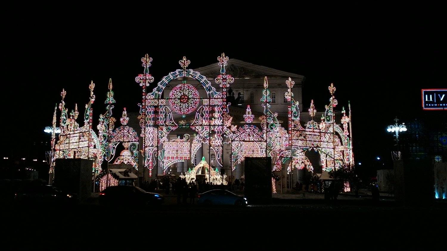 Новогодние огни сказочного города у Большого театра.
