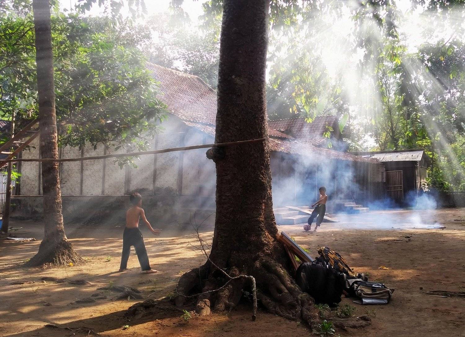 Playing soccer