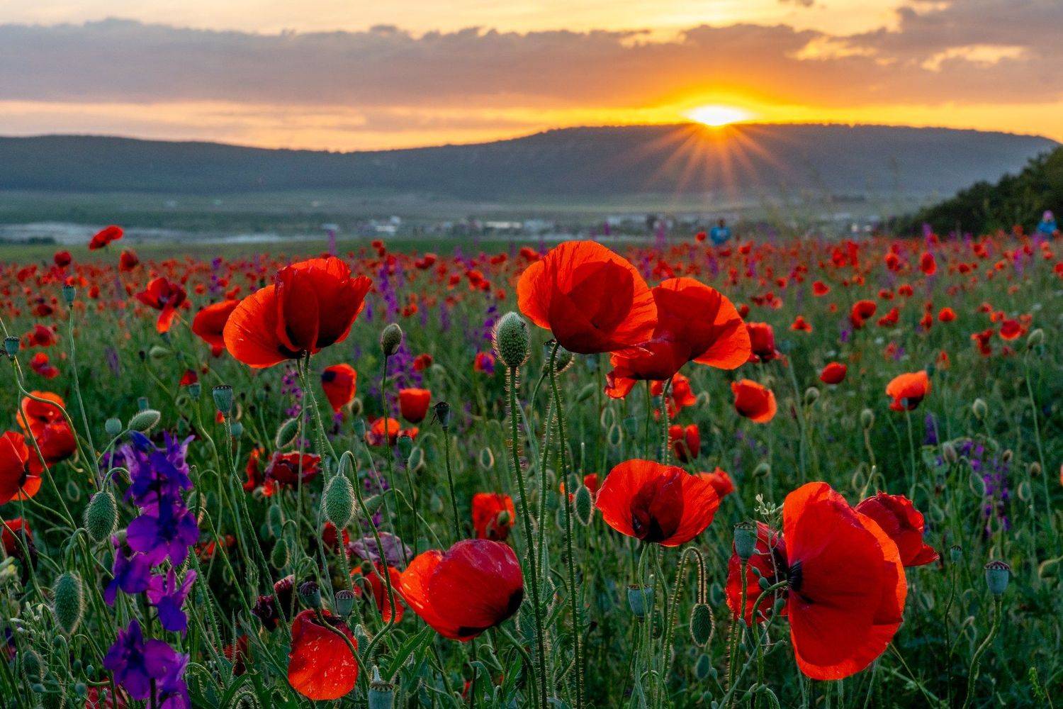 Дикие маки на закате