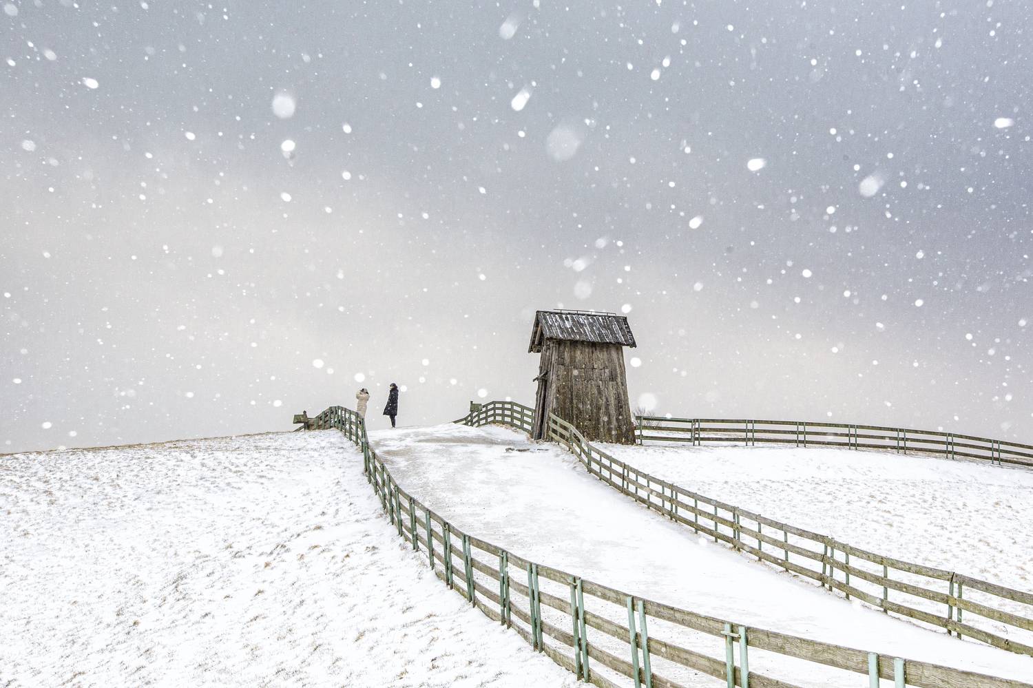 Snowing farm