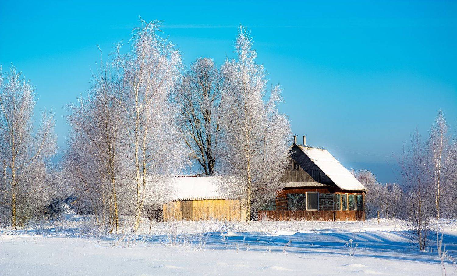 Дом на опушке зимней деревни