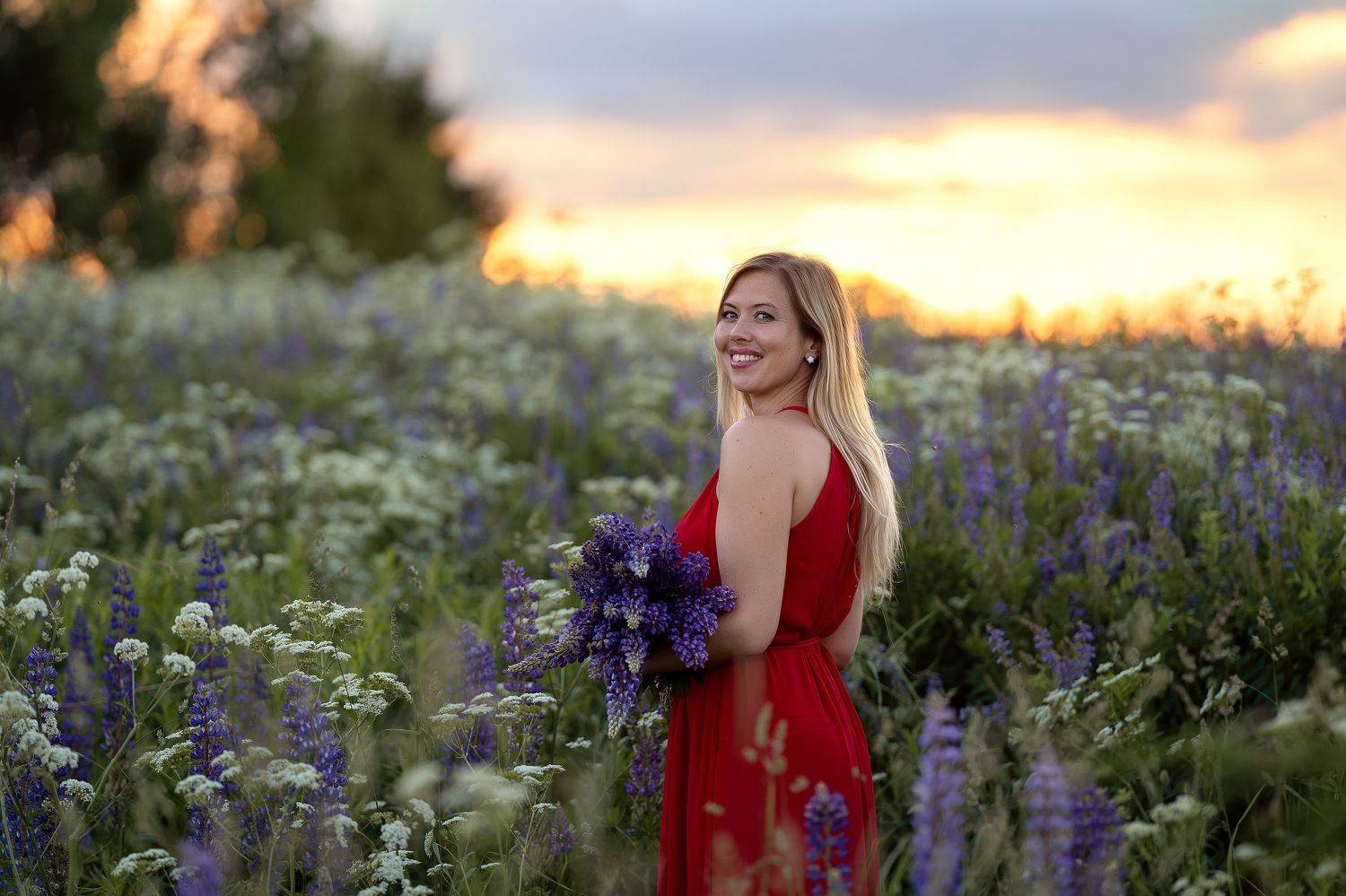 Люпиновое поле на закате