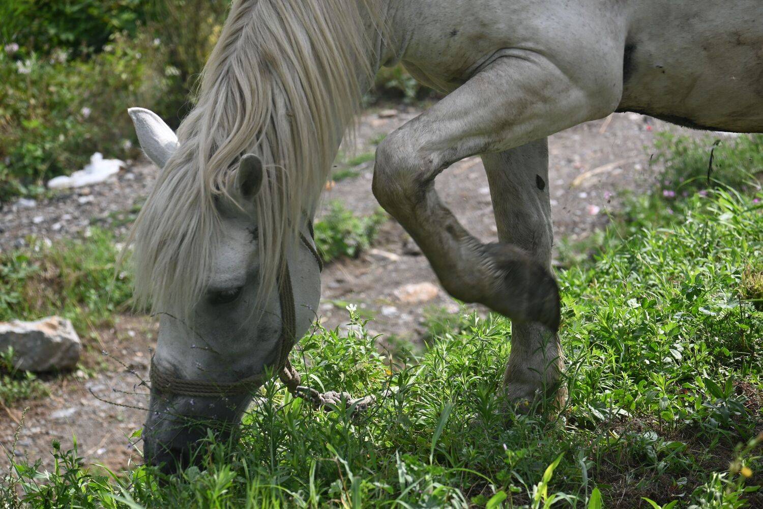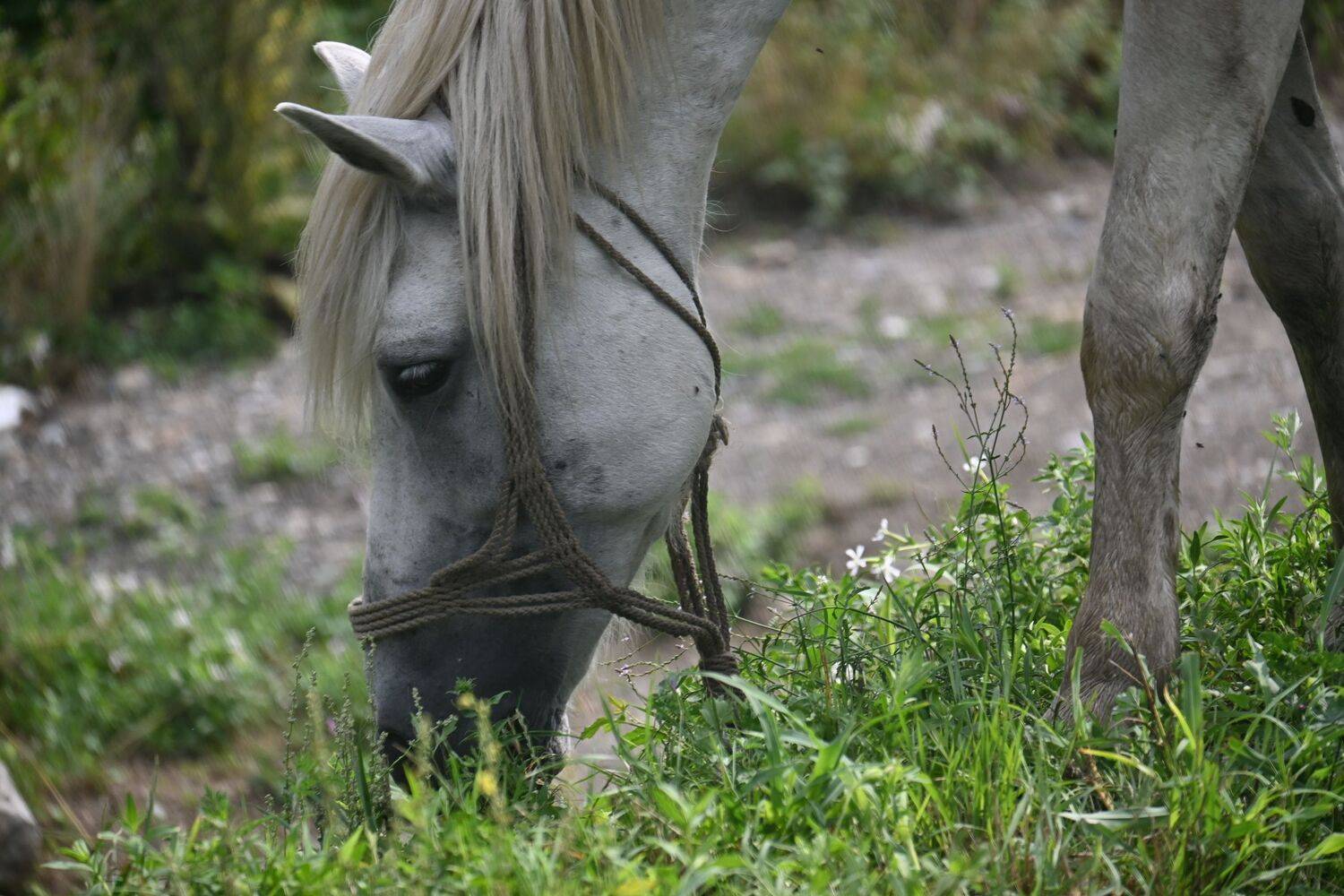 Beli konj na livadi