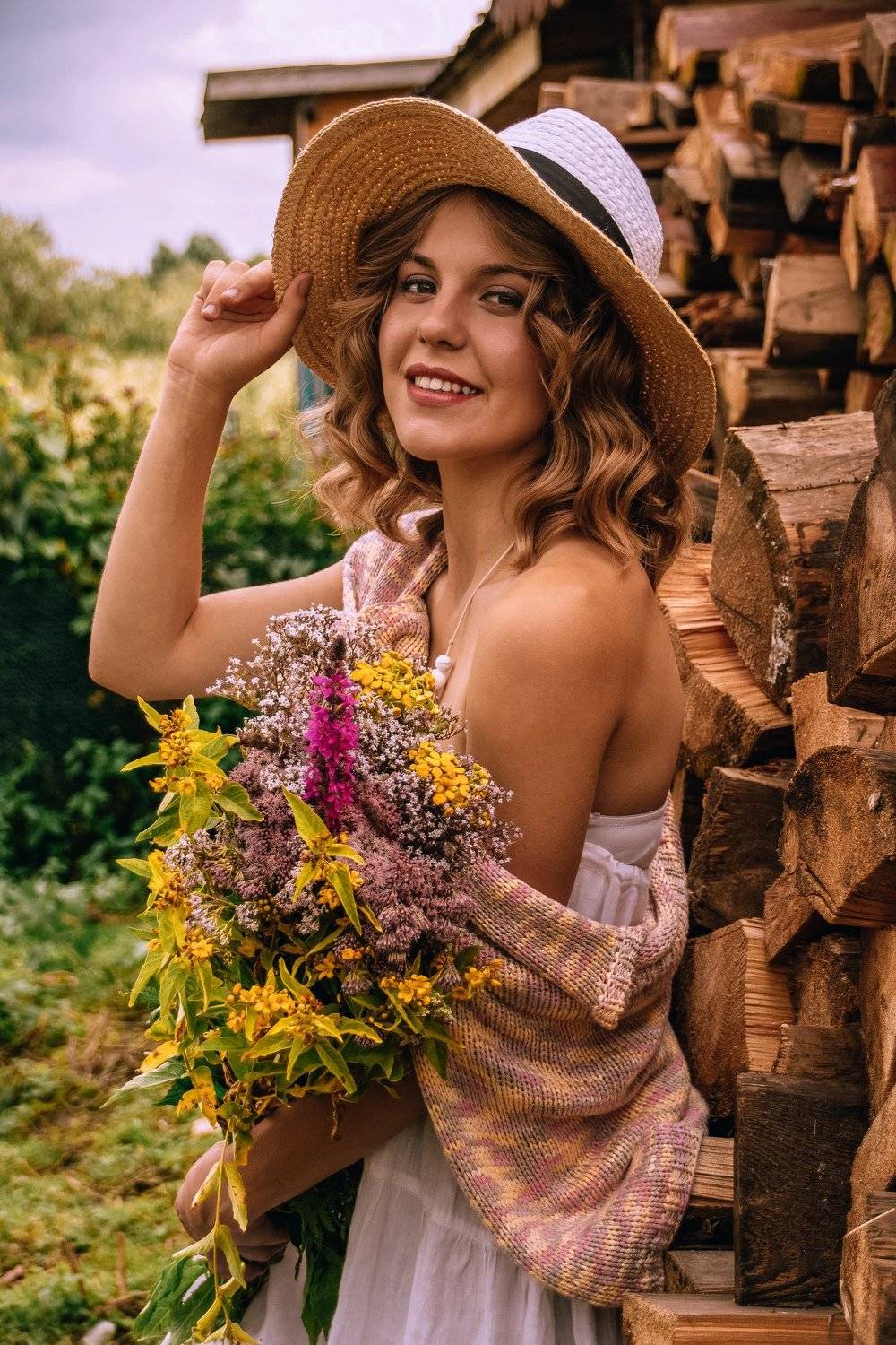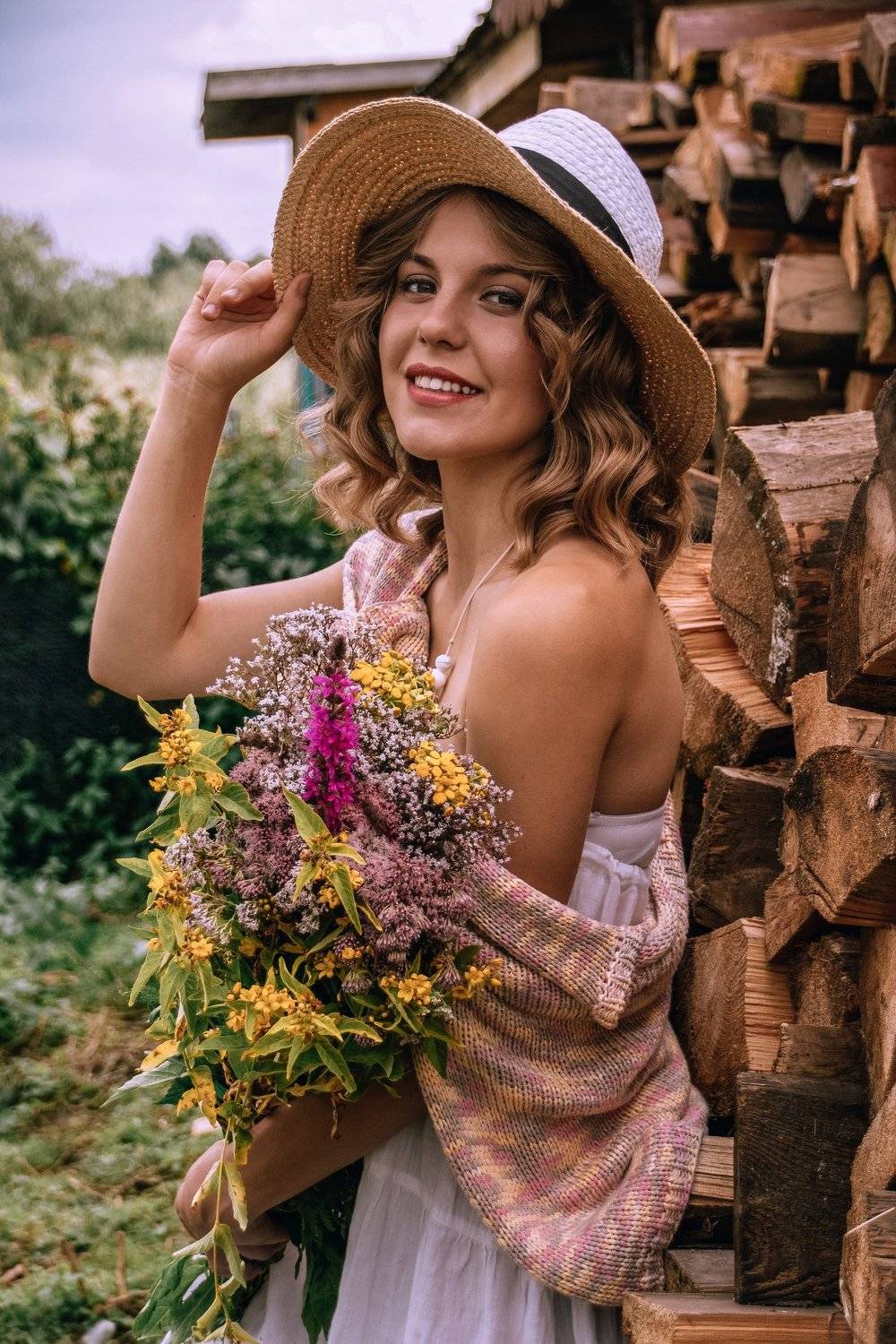 С букетом в руках