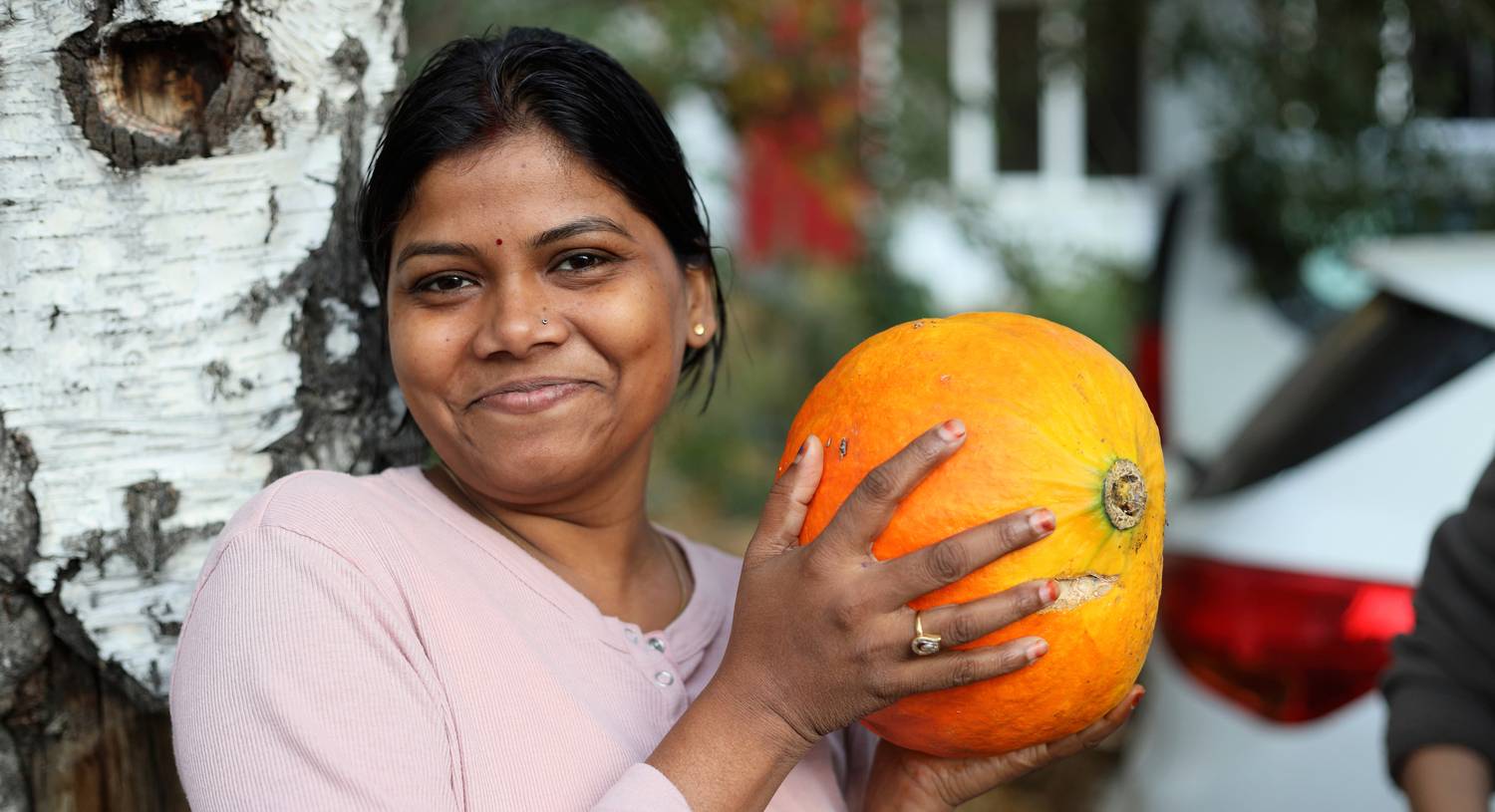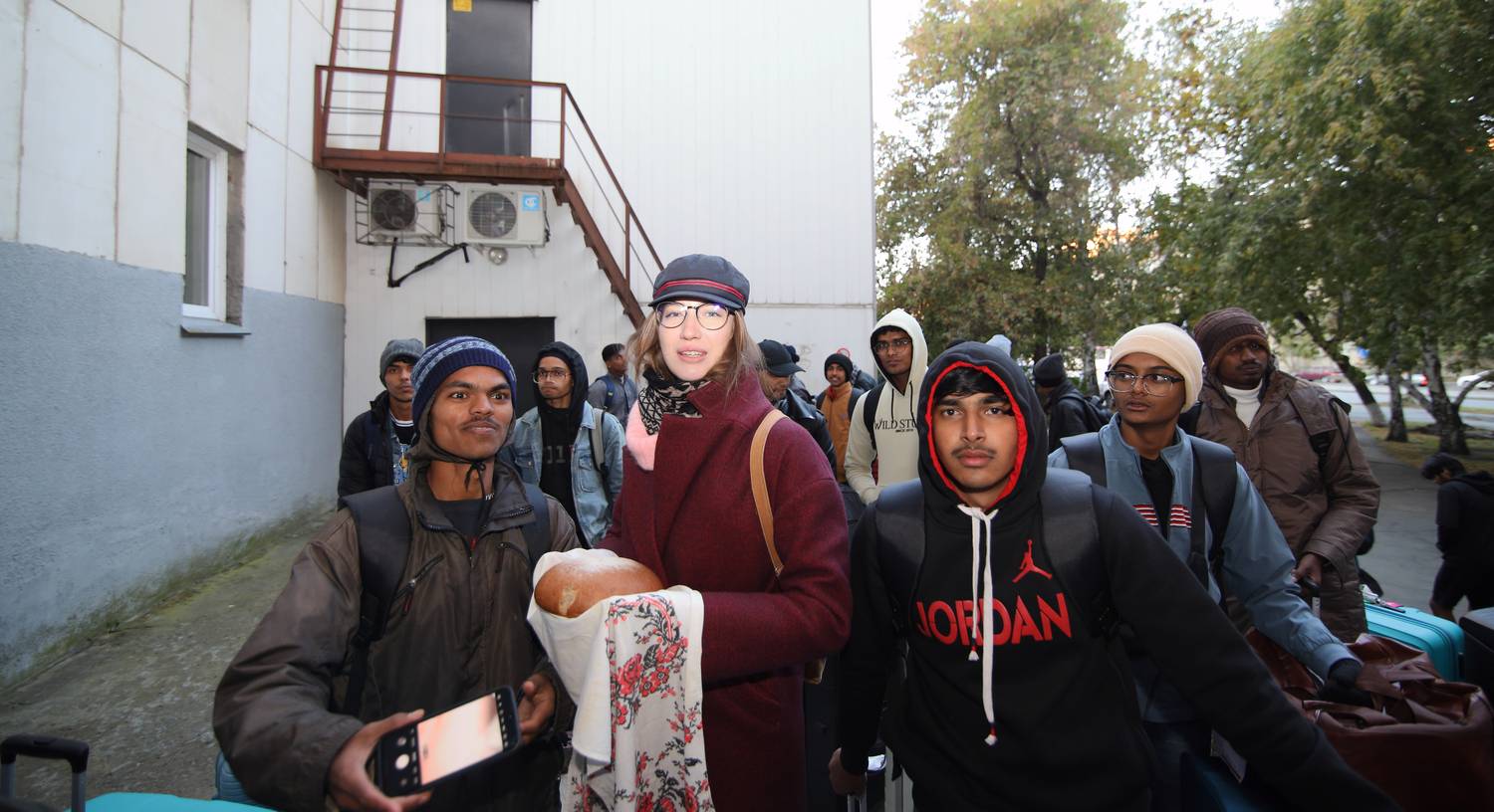 Студенты и тыквы, которые им подарили Света, Женя и Вера.