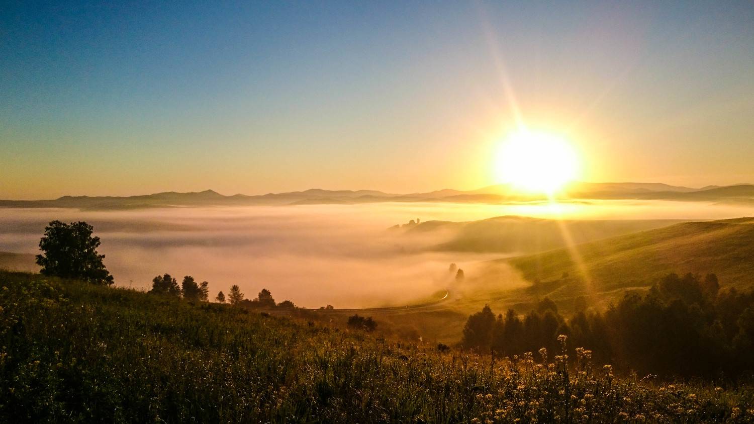 Восход солнца в алтайских горах
