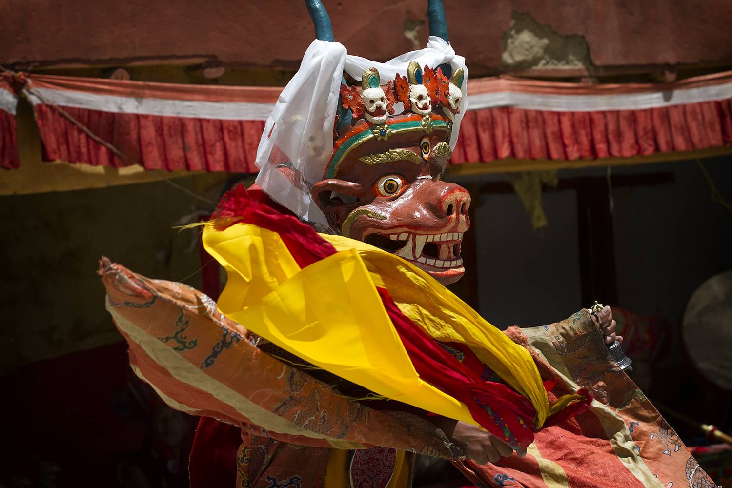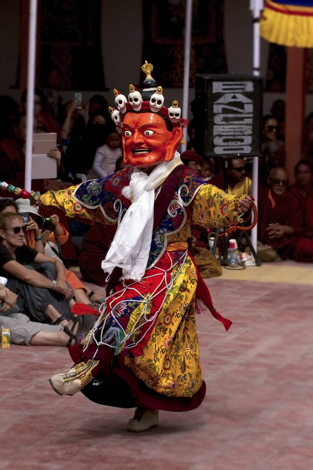 Молодой монах, помогающий во время буддийского  обряда