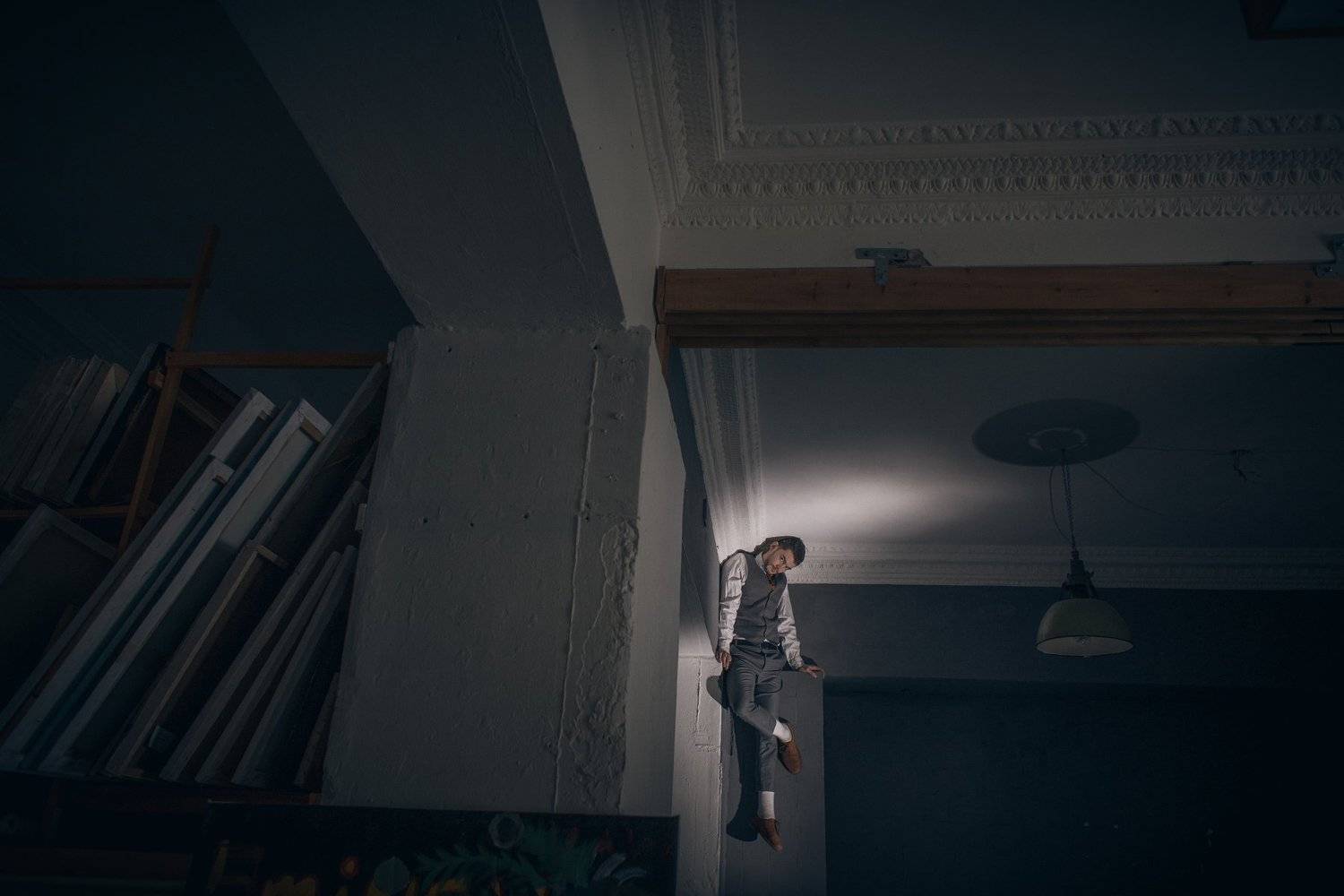 На потолке