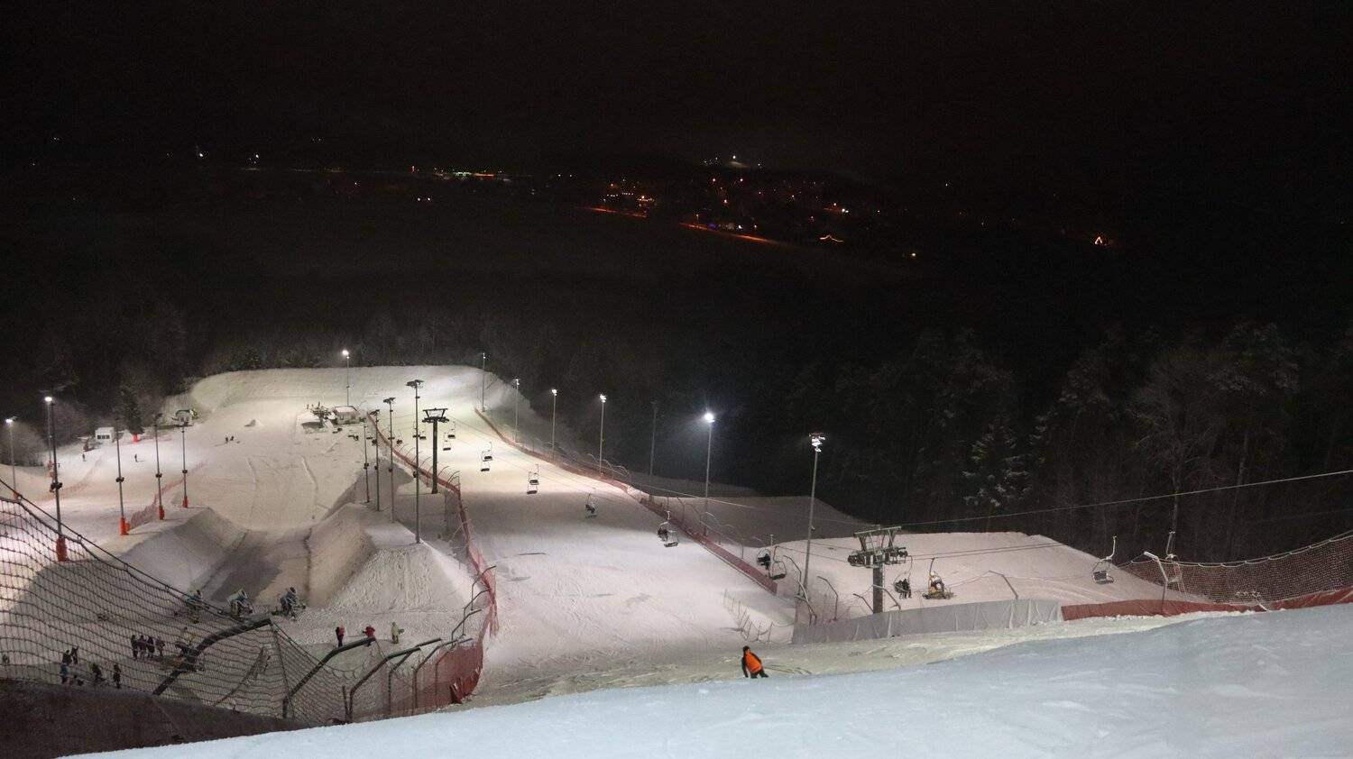 Night downhill ski track view