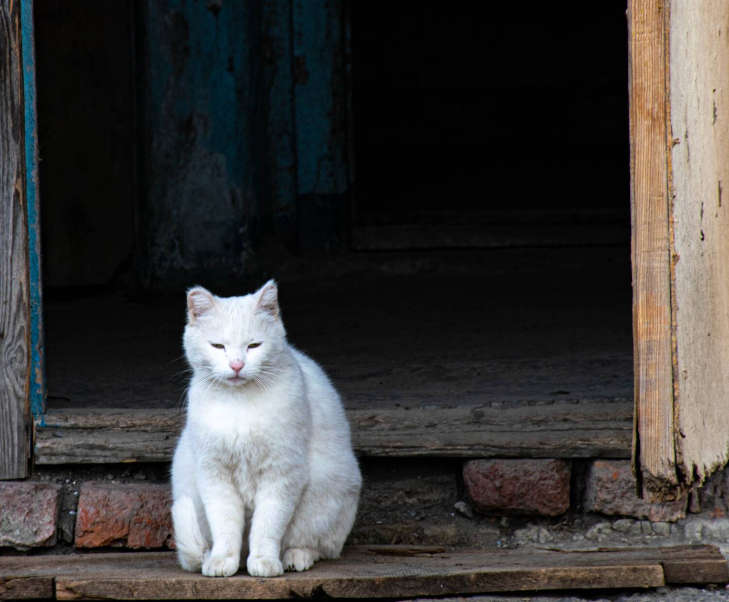 Белая кошка из мрачного подъезда