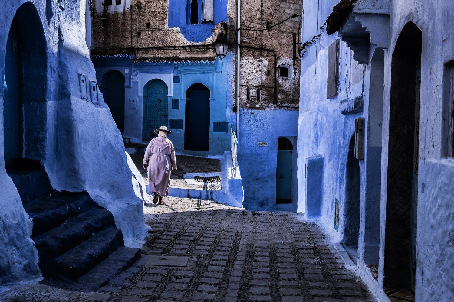 Mujer caminando por las calles de chef chaouen