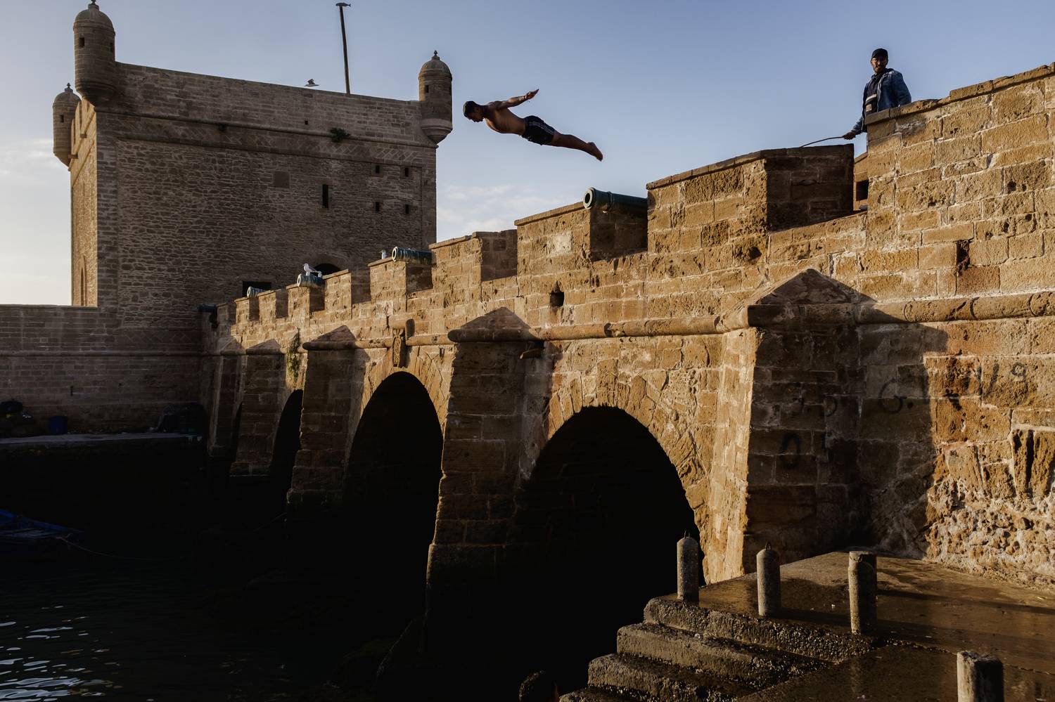 Salto desde la muralla en Esaouira