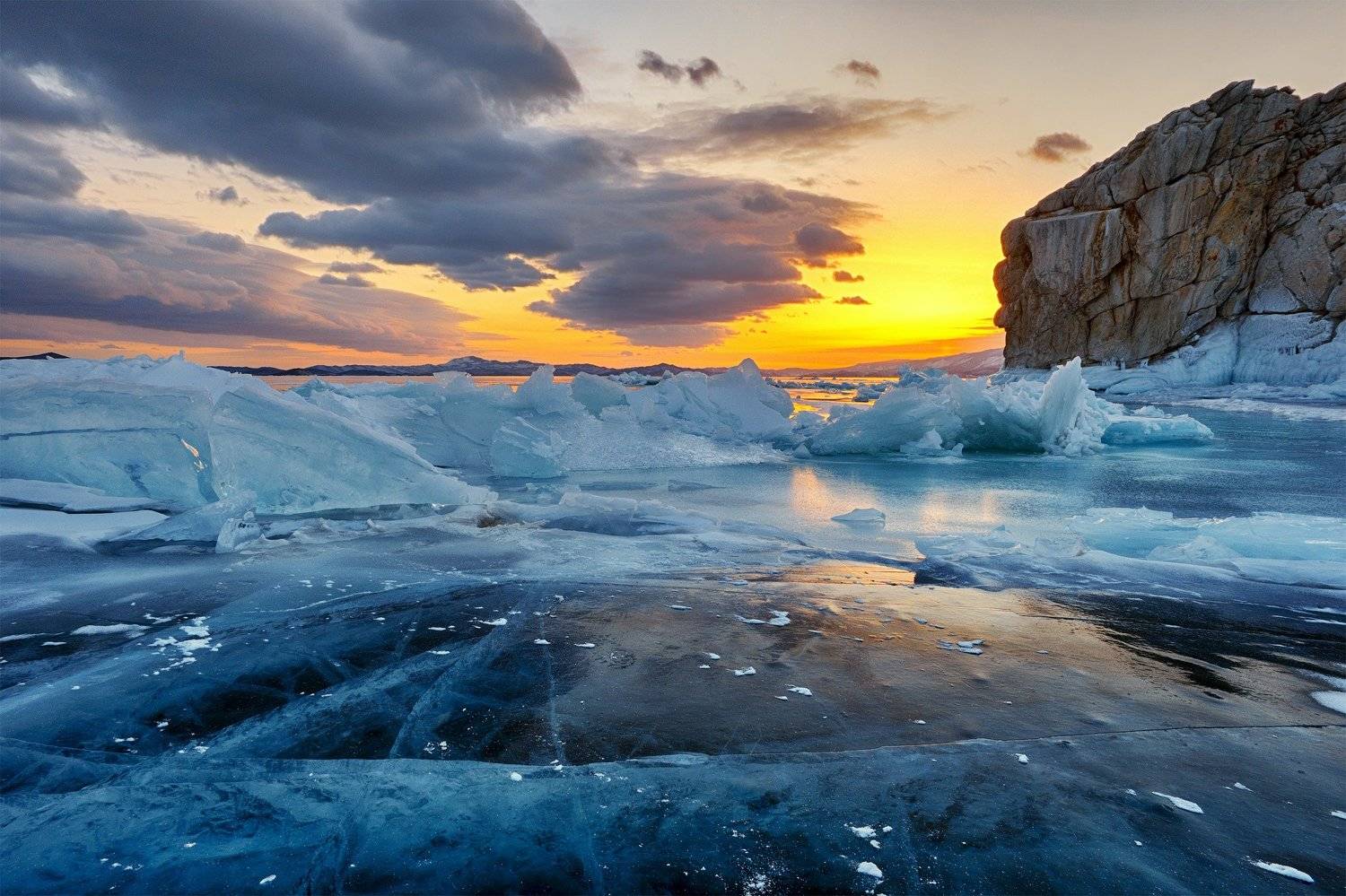 Шарга-Даган на закате на озере Байкал.