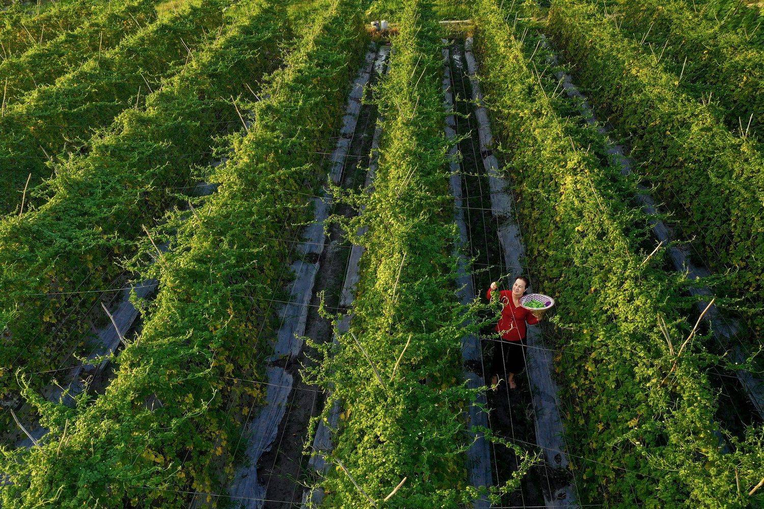 Picking bitter melon