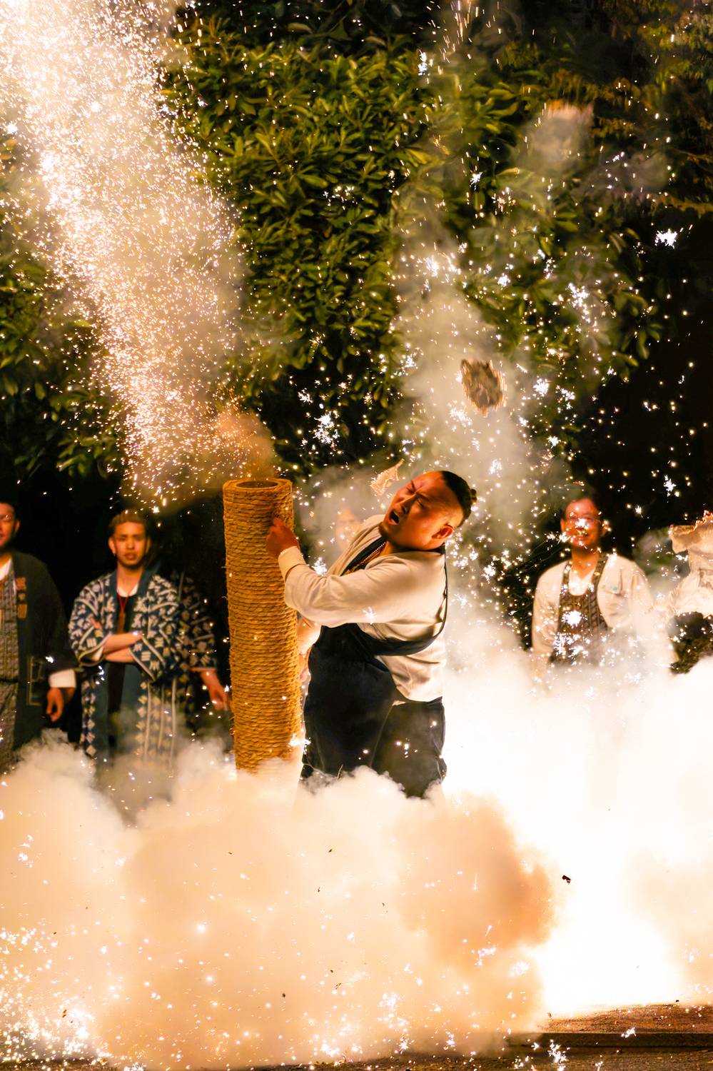 しなやかな女性の手筒花火