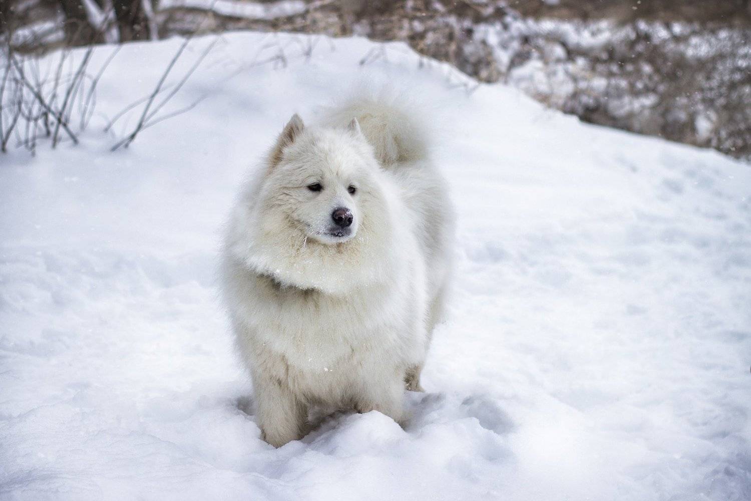 Самоедская лайка на прогулке.