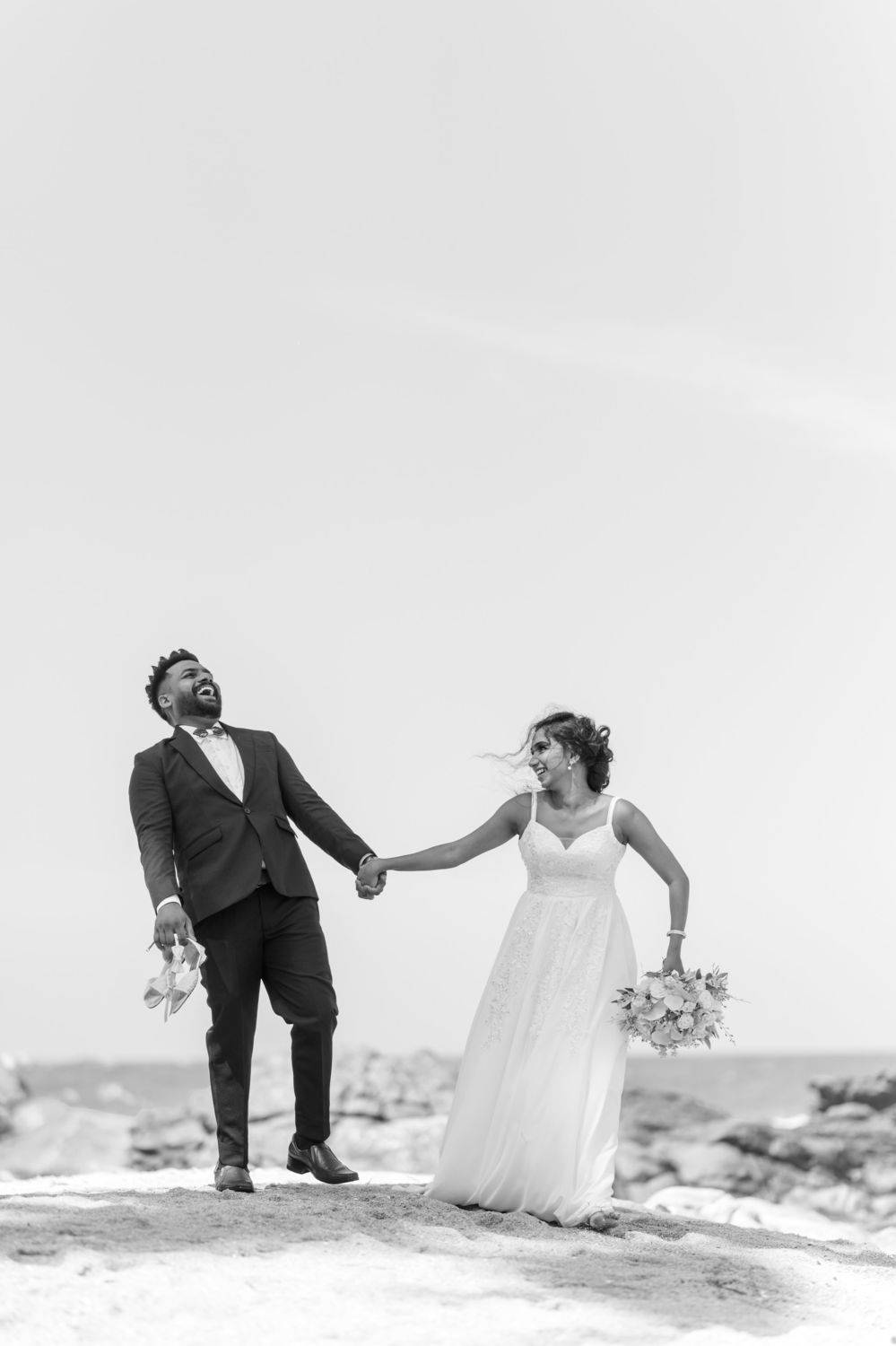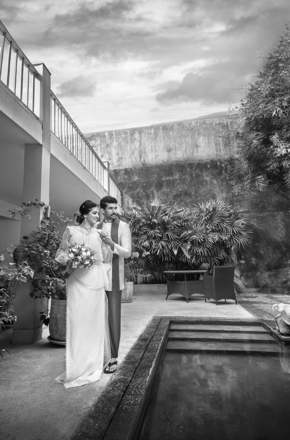 Black & white wedding couple
